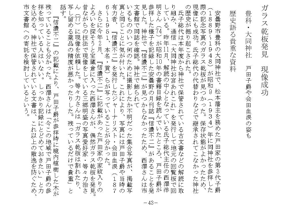 戸田子爵参拝記念写真のガラス乾板見つかる