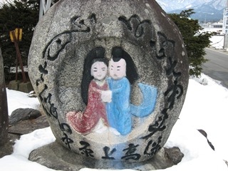 山奥に珍しい接吻像が2体