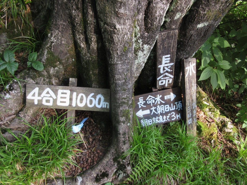 Mt. Ooasahidake trailhead➠ Map (5:30 16m) ⇒ Mikage Forest Branch(5:46 10m) ⇒ 2km point(5:56 44m) ⇒ 4km point(6:40 12m) ⇒ 2nd station_660m(6:52 21m) ⇒ 3rd station_850m(7:13 24m) ⇒ 4th station_1,060m(7:37-7:47 18m) ⇒ 5th station_1,200m(8:05 18m) ⇒ 6th station_1,369m(8:23 25m) ⇒7th station_1,500m(8:48 48m) ⇒ 9th station_1,760m(9:36 20m) ⇒ Mt.Ooasahidake_1,870m(9:56)