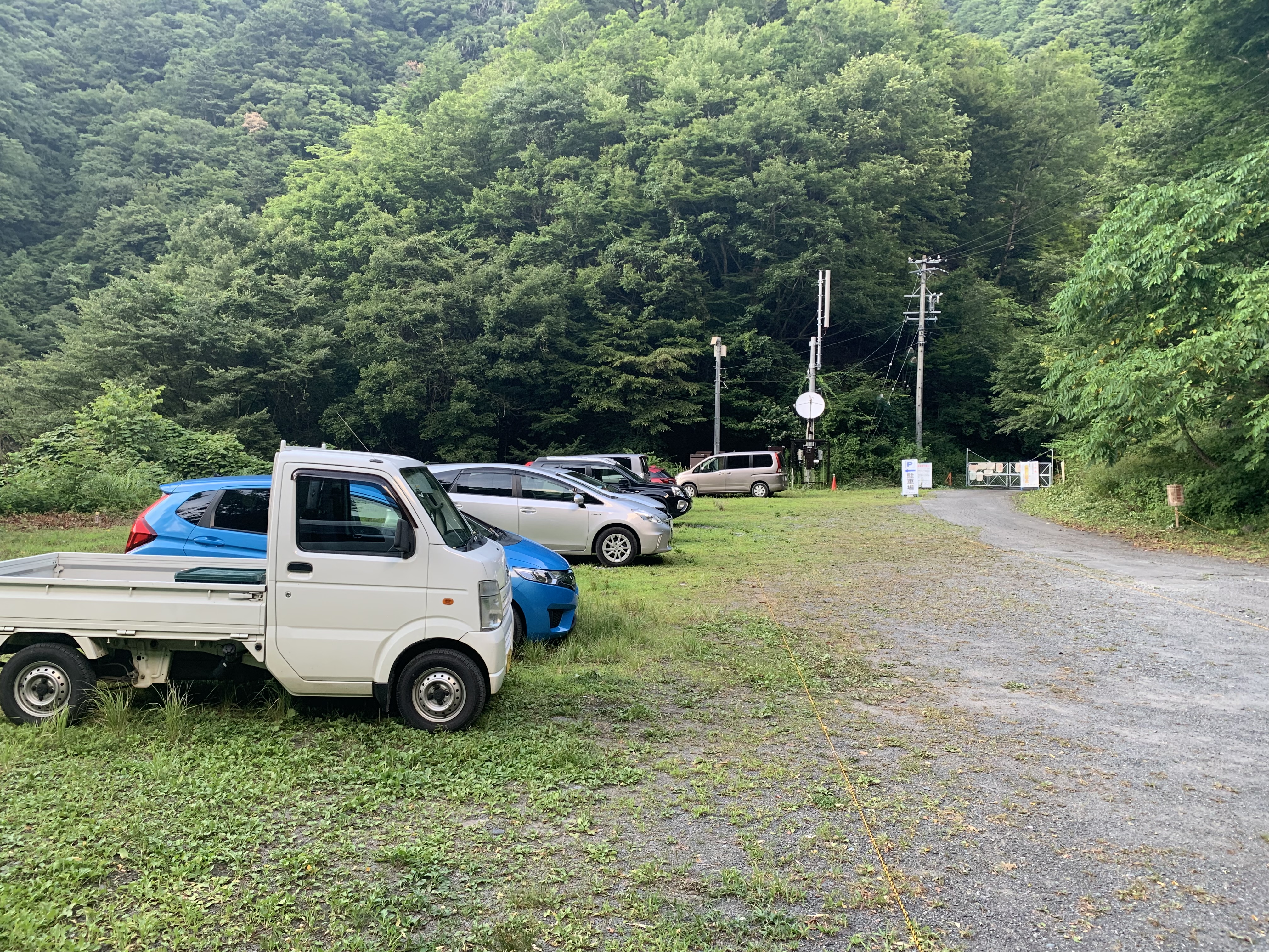 松本駅で友人を乗せ、松本ICを14時22分に入る。飯田ICを15時22分に出る。矢筈トンネルを抜け、国道152号線を通り、上村経由で一旦南信濃の遠山郷に立ち寄る。そこで夕食を摂り温泉に入る予定だった。1件あるス-パ-に寄り、弁当を買おうとしたが売切れだった。しかも公衆温泉かぐらの湯は定休日だった。親切なことに、そこの主が食事処と穴場の温泉に案内してくれる。案内された紺屋旅館で30分程食事休憩する。17時頃そこを出て、遅くなったので温泉は止めて龍渕寺にある観音霊水を汲んで、芝沢駐車場に向けて出発する。国道152号線を南アルプス登山口の看板の所まで引返す。そこから赤石林道15Km程を1時間程かけて芝沢駐車場に行く。駐車場は比較的空いていた。テントと車で宿泊する。