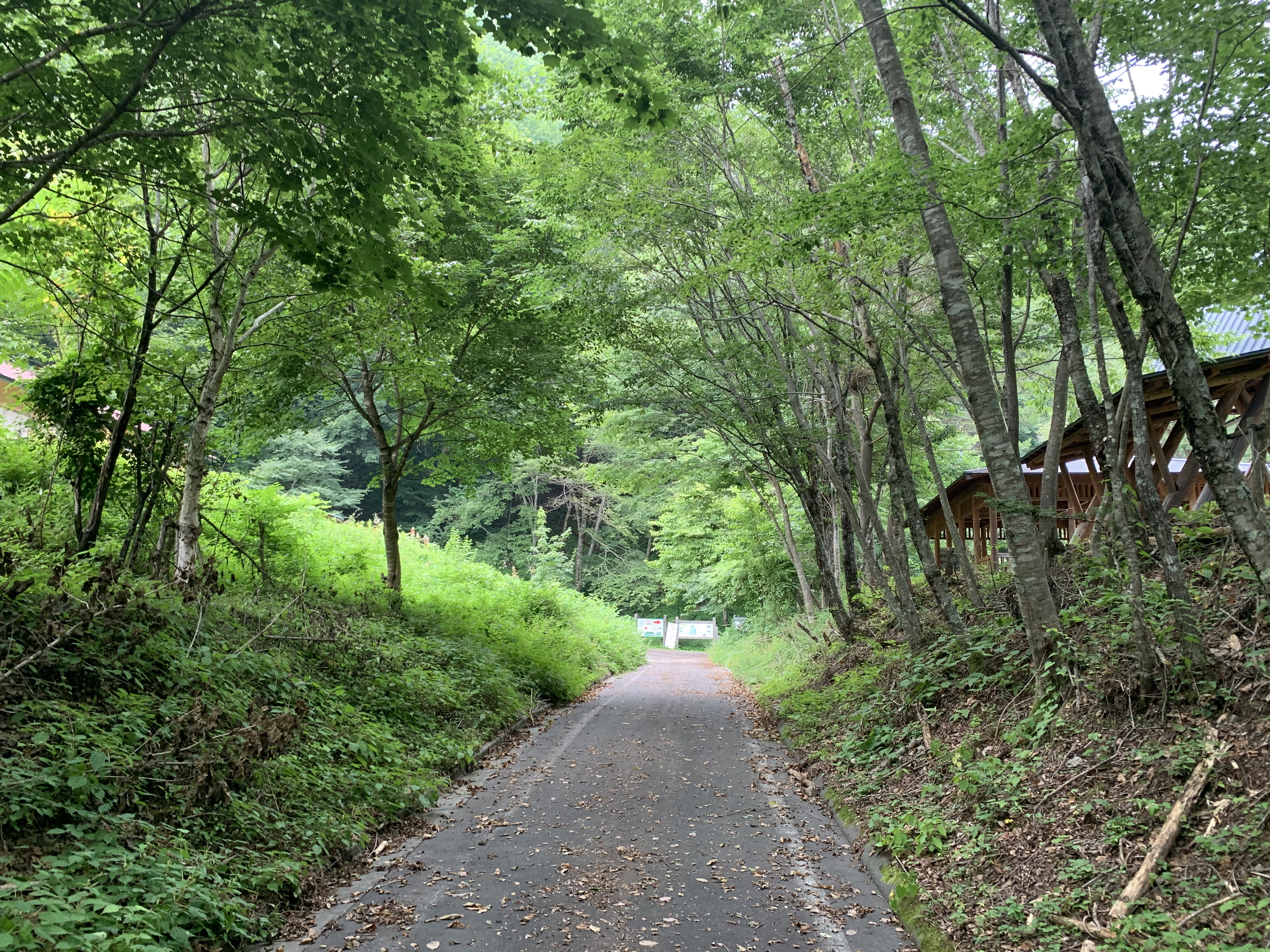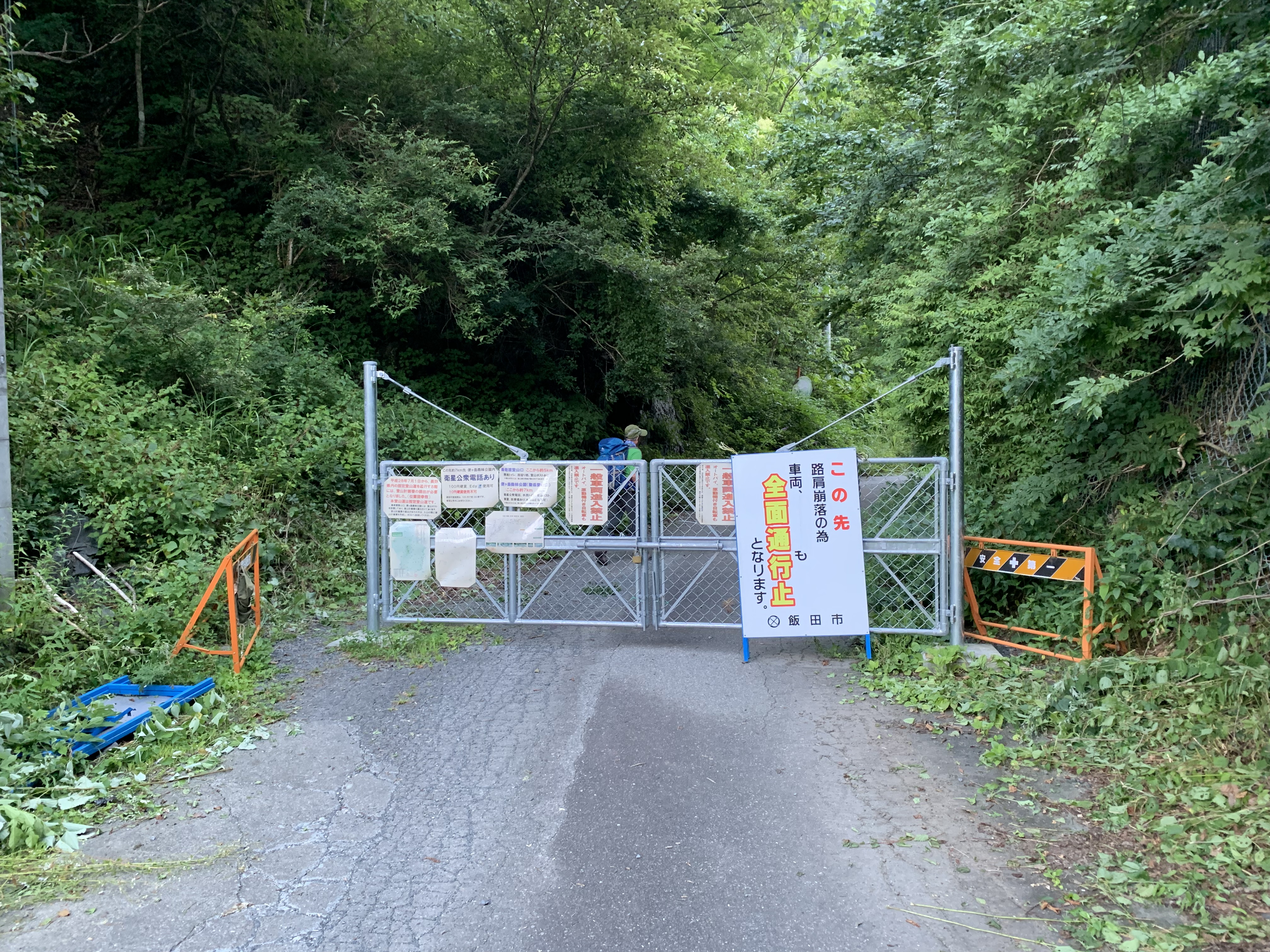 ここから芝沢ゲ-トまでの9.8Kmの長い林道が始まる。便ヶ島まで、かつら沢橋、滝の沢橋、トンネル2ヵ所を通る。便ヶ島はりっぱな建物があり、舗装された道路が来ていた。昔はここまで車が入れたことを思うと、2時間程楽が出来た計算だ。足の痛みをこらえて、単調な林道をコ-スタイムの消化だけを考えて歩く。芝沢ゲ-ト手前の2ヵ所の迂回ル-トが気になる。そこを超えて残り1Kmはなお長く感じたが、芝沢ゲ-トが見えた時の達成感は格別だった。芝沢駐車場は満杯で、路肩まで車が連なっていた。