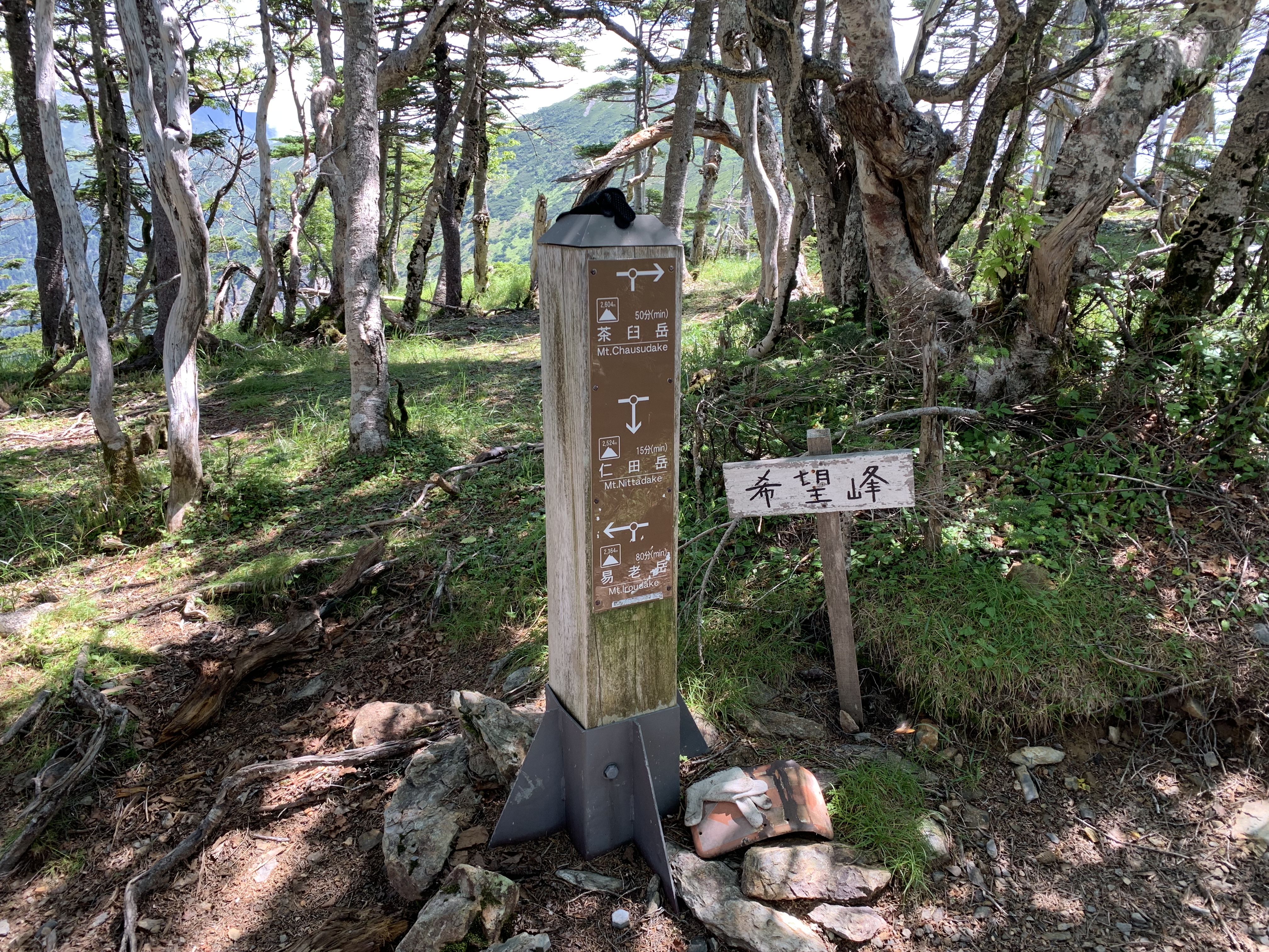光岳山荘(6:02 10分) ⇒ イザルヶ岳分岐(6:12 14分) ⇒ 静高平(6:26 43分) ⇒ 三吉平(7:09 1時間6分) ⇒ 易老岳(8:15-8:26 1時間48分) ⇒ 希望峰(10:14 27分) ⇒ 仁田池(10:41 31分) ⇒ 茶臼岳_2,604m(11:12)