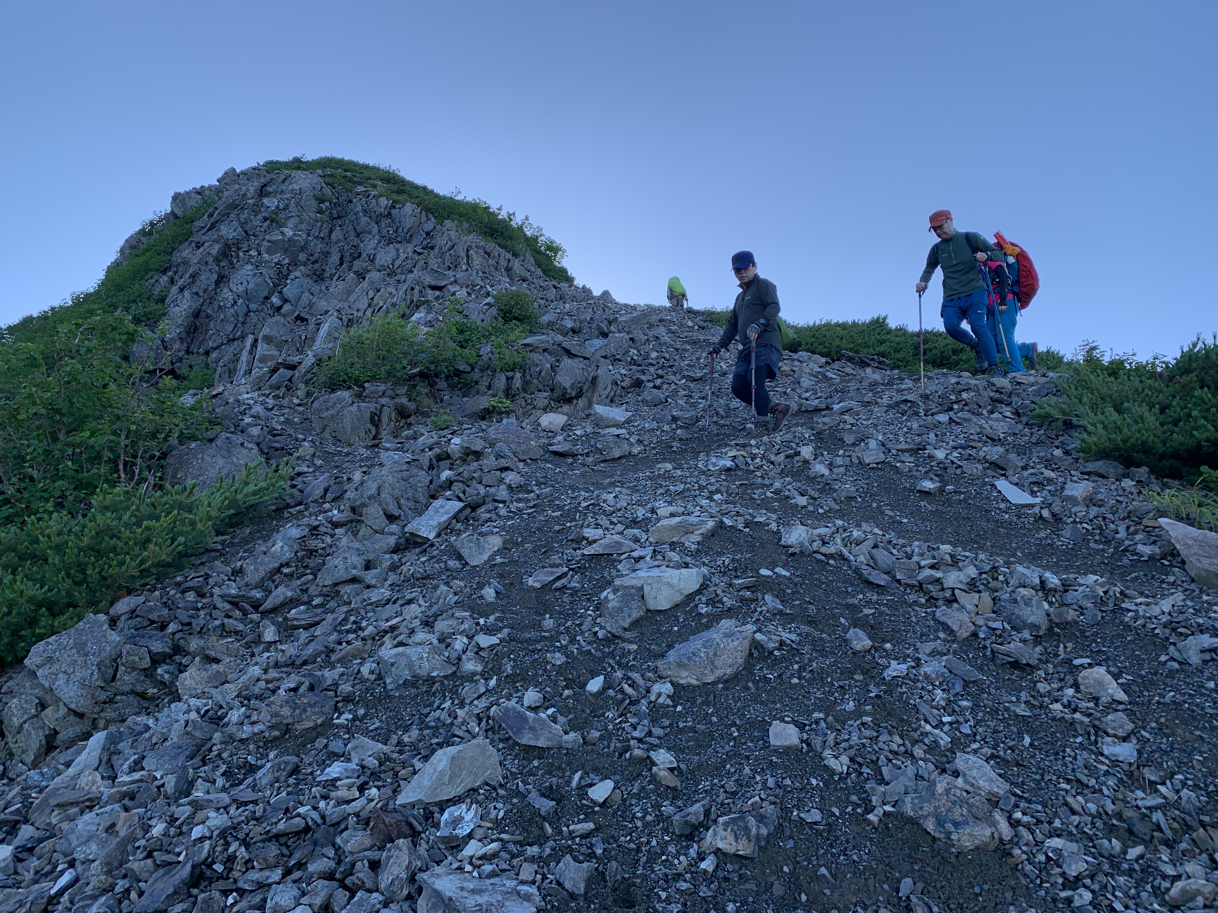 光岳山荘(5:05 12分) ⇒ 光岳_2,591m(5:17 30分) ⇒ 光岩(5:28-5:37 8分) ⇒ 光岳(5:45 22分) ⇒ 光岳山荘(5:59)