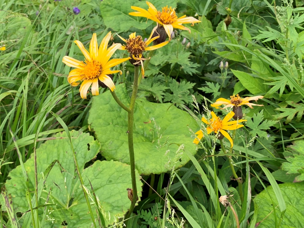 登り始めると、直ぐにマルバダケブキの群落に出会う。そこから森林帯に入り、小聖岳直下のガレ場を抜けると、視界が開けた小聖岳(2,662m)の広場に出る。そこから、正面に聖岳、南側の上河内岳、光岳の眺望がすばらしい。勿論富士山も優雅な山容を見せている。