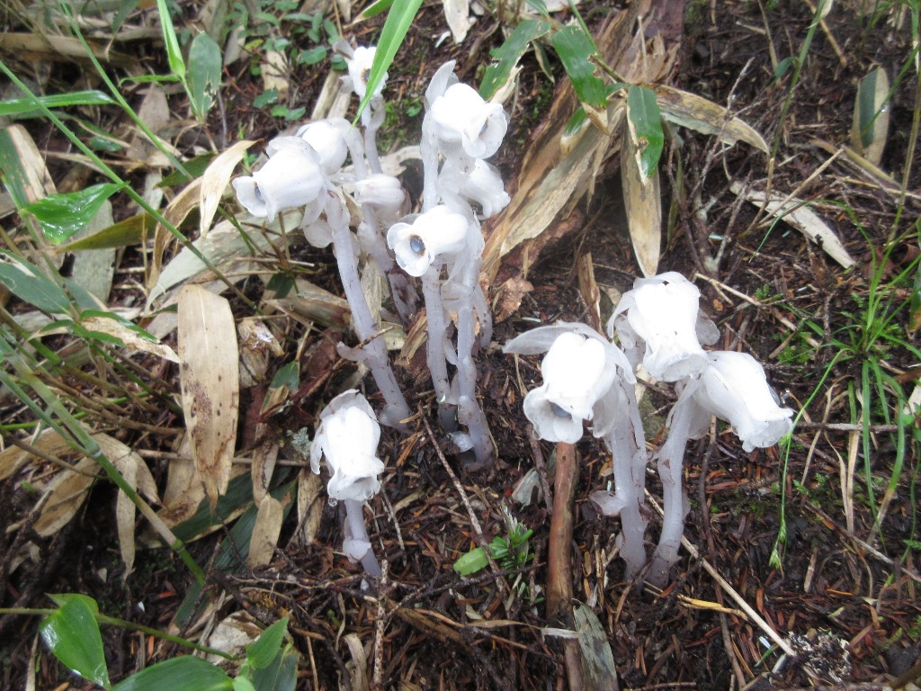 今回の常念岳登山は、私にとって5回目となる。娘の友人が初めての登山に挑戦したいと言うので、少しきついが私の自宅に近い常念岳を選んだ。混むことを考え、連休最終日から1泊2日で登ることにする。私と妻、娘を交えた4人パ-ティ-となる。周回コ-スなので、私は三股からの日帰りで、翌日一の沢に車を回すことにする。自宅から常念岳を見ると、多少ガスってるようだ。三股駐車場近くの道路まで車が止められていたが、前日に帰った登山客が多くいたためか、数台の空きスペ-スがあった。林道ゲ-トを、8時23分に出発する。三股登山口の登山者カ-ド提出所で、係員の指示のもと登山届を出す。登山口で記念写真を撮り、8時43分に登山開始だ。橋を渡り、蝶ヶ岳との分岐から本格登山が始まる。常念岳まで7.1Kmの表示を確認して右に進む。登山道脇に、特徴のあるギンリュウソウを沢山見かける。樹林帯の中の単調な登山道を、高度を上げて行く。迂回路の標識までは歩き易いが、そこから勾配がきつくなり、所々根っこの段差を超える。そのうち緩やかな尾根道となる。昨日の雨のため、登山道はぬかるんでいる。暫く楽な時間帯を過ぎると、少し下った先に急坂が待ち受ける。駐車場から3時間半程で、岩場取りつき付近の梯子に達する。