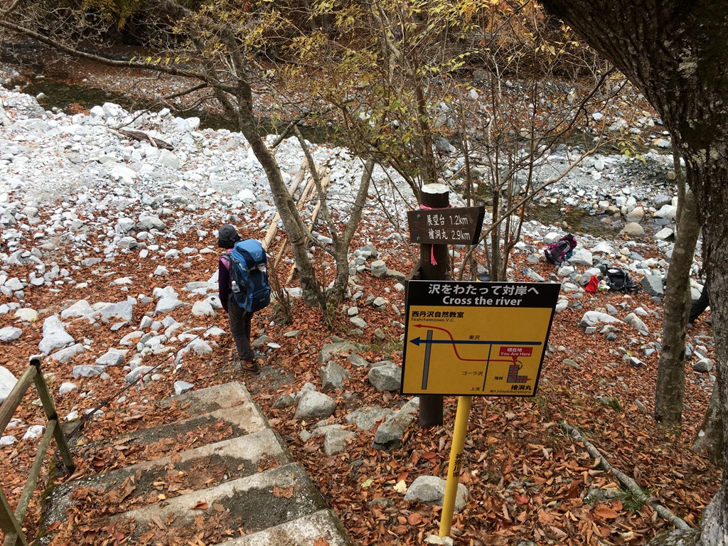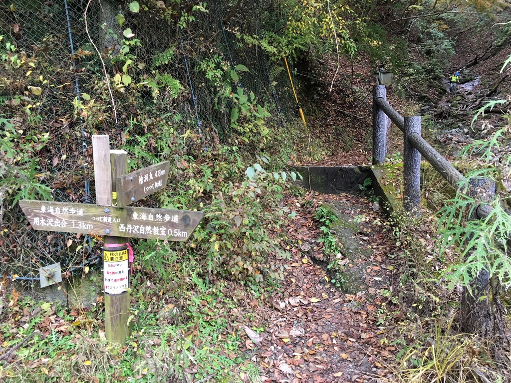 檜洞丸(1,601m)を早々に辞して、西丹沢自然教室まで5.3Kmを歩き始める。長い木道が800m程続く。その先、2Km程ガレ場で歩きづらい尾根道を下ると、ゴ-ラ沢に到着する。河原で昼食タイムとする。沢を渡るとゴ-ラ沢出合で、少し上るとフラットな巻き道が川に平行して続く。西丹沢自然教室まで1Kmから少し下りがきつくなり、つつじ新道入口の道路に着く。西丹沢自然教室に檜洞丸から、休憩を含めて3時間26分で着く。その時丁度、バスが到着する。ゴ-ラ沢あたりから時折雨粒が落ちて来たが、西丹沢自然教室まで何とかもった。40分程バスの待ち時間があるので、近くを散策する。バス出発時間前から小雨模様となる。帰路途中の中川温泉町立ぶなの湯で、1時間程疲れと汗を流す。谷峨駅でバスからJRに乗換え藤沢で降り、バスに乗換え無事友人宅に帰着する。