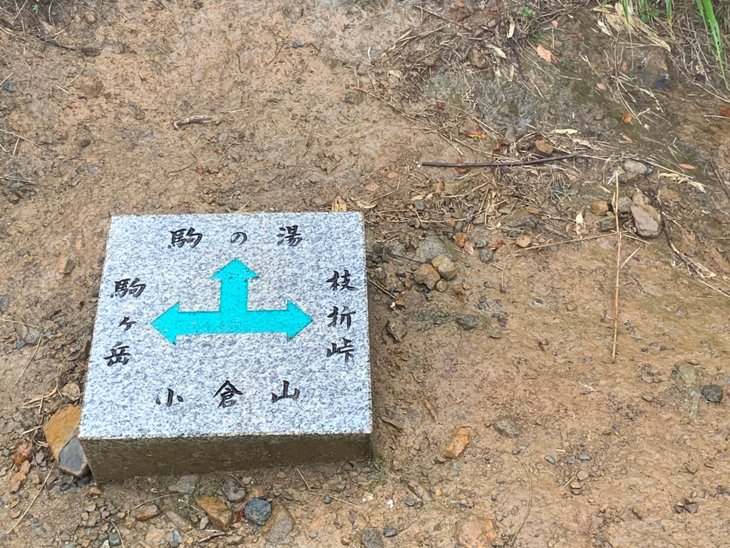 駒ヶ岳(10:26 17分) ⇒ 駒の小屋(10:43-10:45 56分) ⇒ 百草ノ池(11:41 33分) ⇒ 小倉山(12:14 47分) ⇒ 道行山(13:01 1時間11分) ⇒ 明神峠(14:12 36分) ⇒ 枝折峠登山口(14:48)