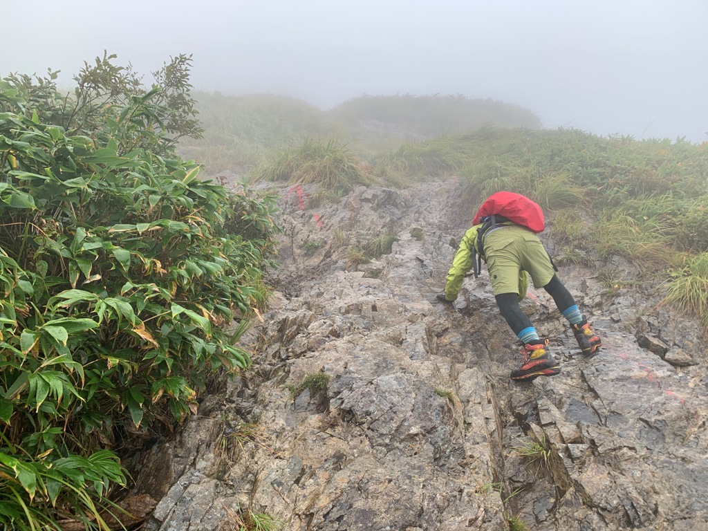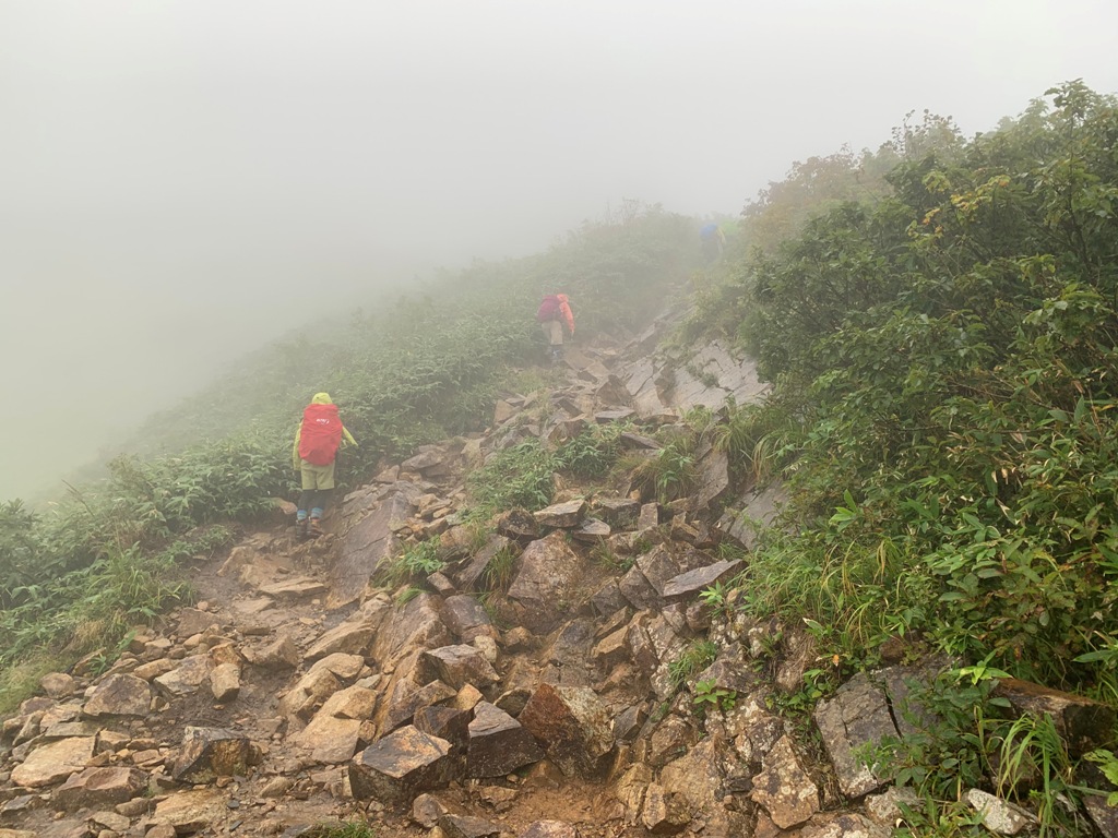 帰りのル-トは、大日岳を少し進んで迂回路に入り、千本檜小屋に戻るようだが、そのまま引返してしまう。登山者が少なかったのでよかった。第1峰地蔵岳に立ち寄りルンゼを下った。何を間違えたのか、迂回路を戻ってしまい、帰路の登山者と会って間違いに気づく。千本檜小屋で同行者と合流して、直ぐ下山をする。女人堂までは視界があるので快適だ。そこから先は灌木帯で退屈な山歩きとなる。
