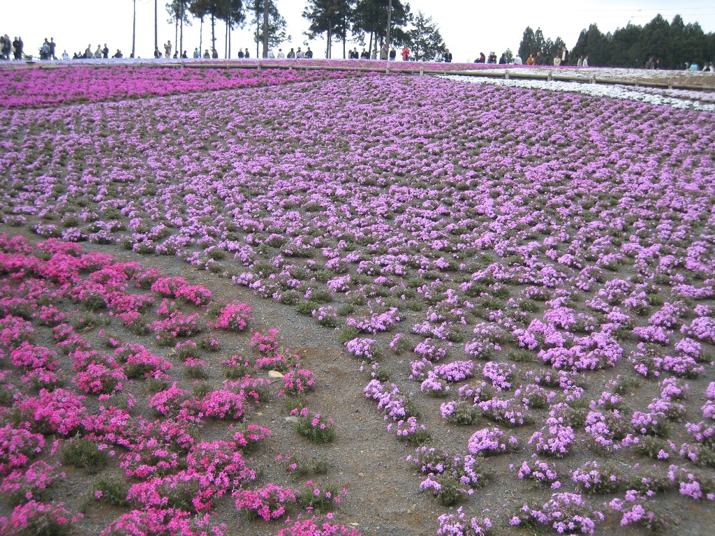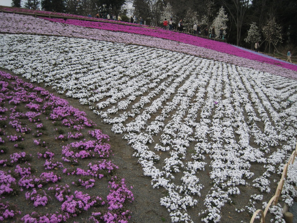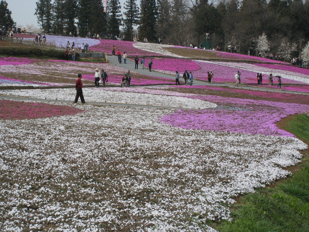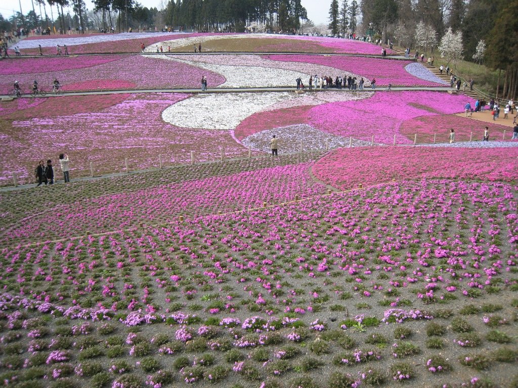 (概要) 羊山公園の南側、秩父のシンボル武甲山を東に望む丘陵地に広がる芝桜の丘は、春になると一面が白やピンク、淡いブルーの花で覆われます。約17,600㎡の広さに9品種、40万株以上の芝桜を植栽している。(秩父市HP転記) (アクセス) 電車なら西武秩父駅から徒歩約20分、秩父鉄道御花畑駅から徒歩約20分、車なら関越自動車道花園ICから国道140号、皆野寄居バイパス利用約25km、圏央道狭山日高ICから国道299号を約39kmです。➠ Map