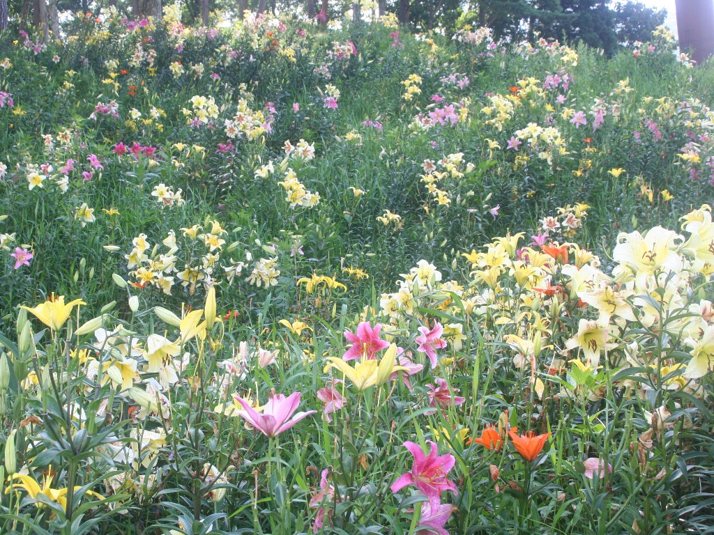 ゆり園は山麓ゆり園と、山頂ゆり園の2ヶ所。山麓ゆり園は7月、山頂ゆり園は8月と見頃がズレるので夏休みならいつ来てもどこかで見頃に。「ゴンドラリフトのノアは6人乗りで貸切状態で山頂まで移動できます。山頂までは8分ですが、16番の柱から18番の柱の間は北アルプスが眺望できますのでお見逃しなく。山頂のゆり園もその辺りからなら眼下にできます」とのこと。スカシユリの開花は7月下旬〜8月上旬、ハイブリットユリが8月中旬〜下旬に見頃を迎えます。山頂駅ではカフェレストランが営業するほか、ブナの森を歩く一周15分ほどの「ブナ林散歩道」も整備されており、途中には白馬三山を一望にする「北アルプス見晴台」もあります。それでは歩き足らない場合には「ねずこの森自然探勝路」を。のんびり歩くと2時間ほどの遊歩道で、ブナやネズコ(クロベ=ヒノキの仲間で木曽五木のひとつ)の大木と対面できます。(信州Stail HP転記)