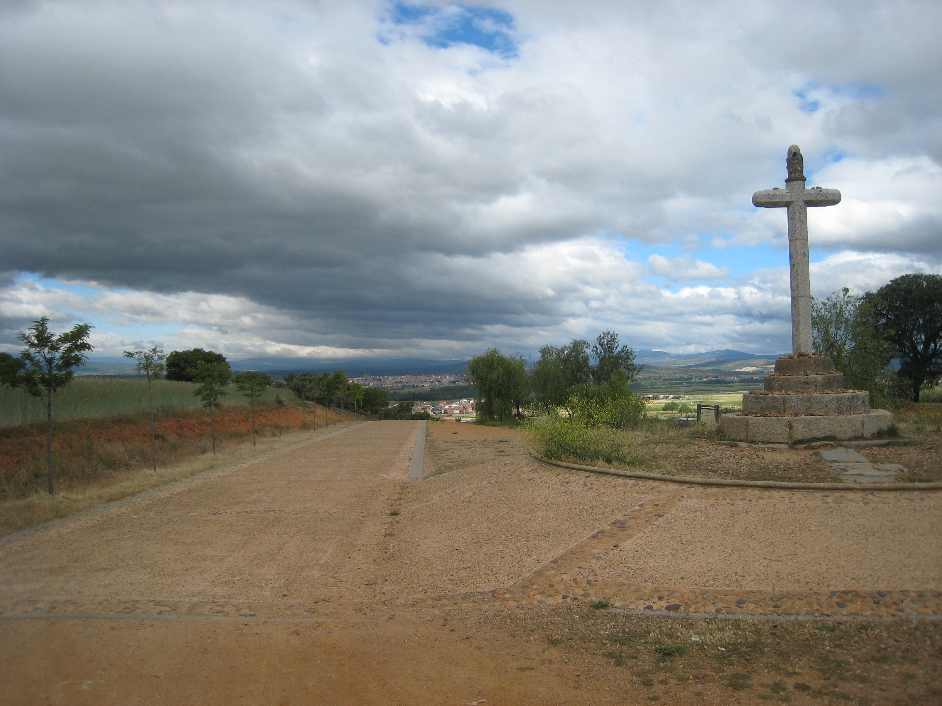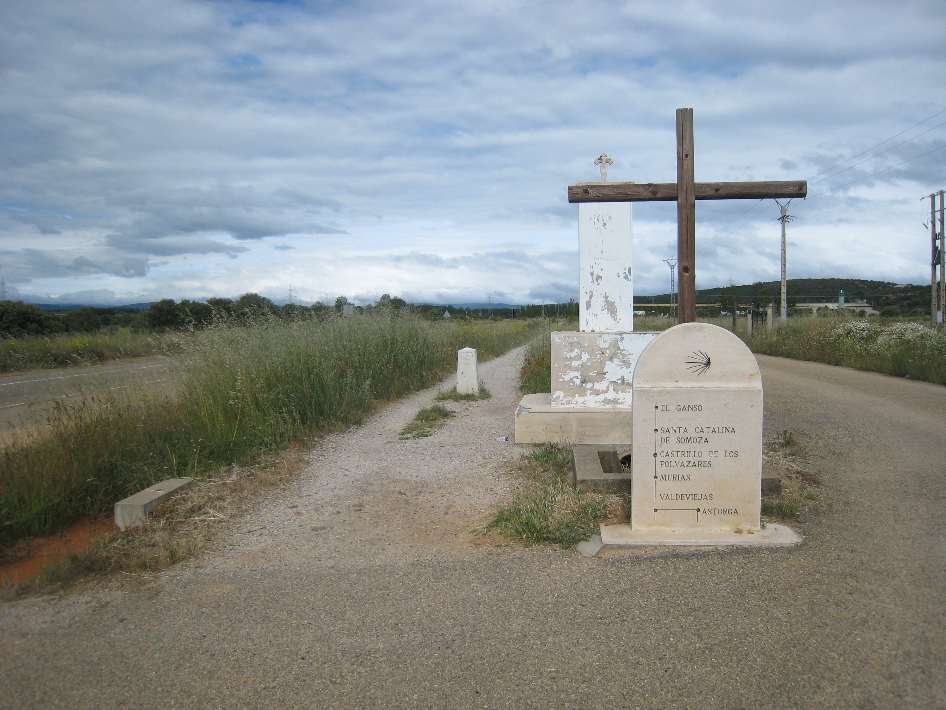 アルベルゲSan Migueをl8時5分に出発する。単調な巡礼路を黙々と歩く。時間があったので左にそれて、田んぼの中の道を大回りした。巡礼路に戻るところで、林の中に迷いこんだ。10時15分頃San(サン) justo(フスト) de(デ) Vega(ベガ)の遥か先にAstorga(アストルガ)が見渡せる、十字架の碑が立つ高台に到着した。教会の尖塔が段々と大きくなってきて、鉄道の陸橋を越え、最初のアルベルゲ横を通り、坂を登りきった所のりっぱなAlbergue de peregrinos Siervas de María(アルベルゲ)に11時30分に着いた。