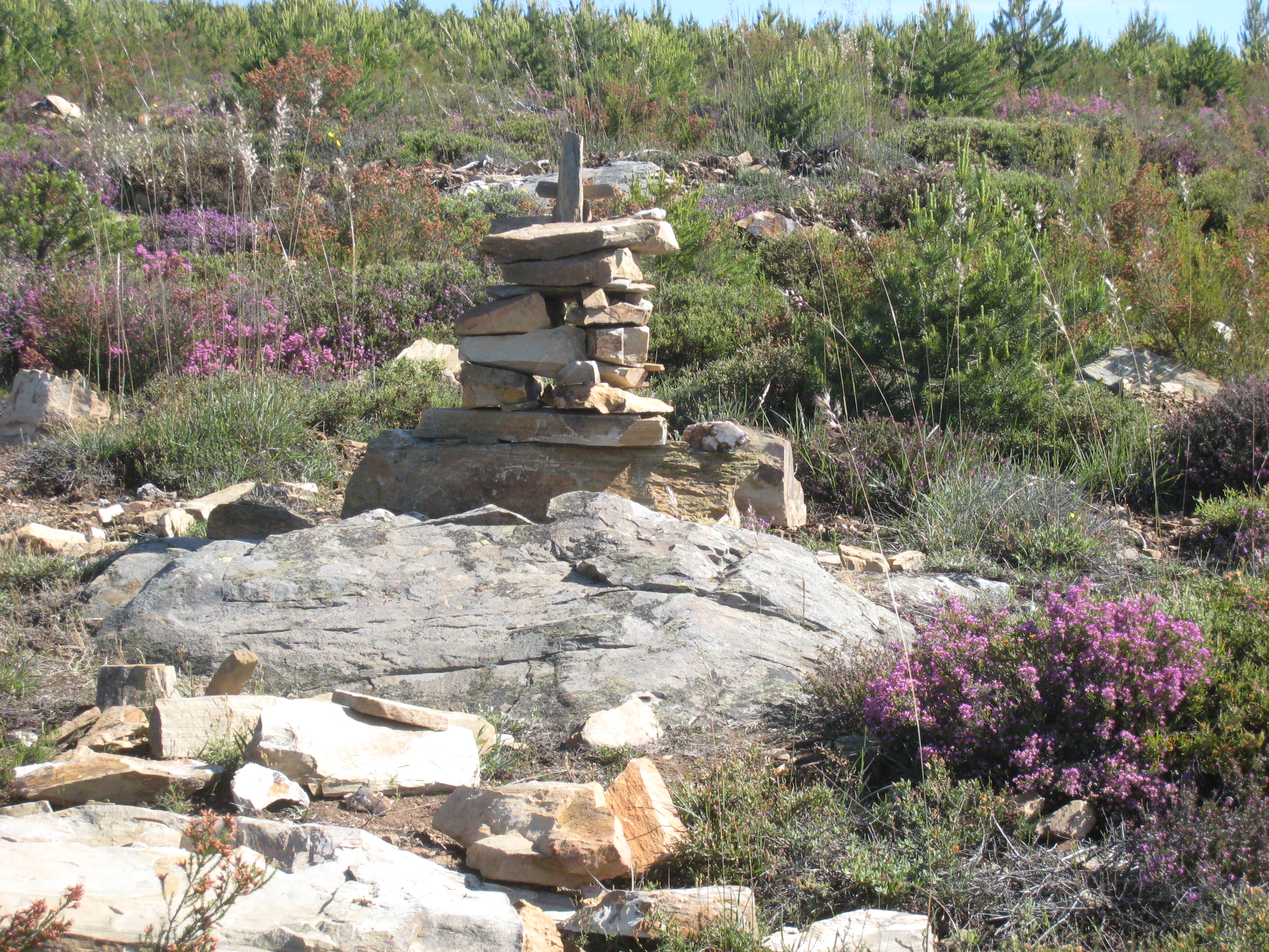 朝食後5€を寄付する。ホスピタレーロ2人と写真を撮り、7時30分に出発する。時間があったので、巡礼路沿いの斜面に、3時間程かけてケルンに十字架を作る。Foncebadón(フォンセバドン)の入口に十字架があり、11時30分に着く。アルベルゲは14時オープンなので、近くのBarでビールを飲んだり、近くの鉄塔が見える小山に登ったりして時間を潰した。娘はなかなか来なく、16時頃やっと到着した。今度は26歳のイタリア人女性キアラを伴っていた。アルベルゲは夕食、朝食付きのドナチボだった。2010年6月19日(土) 晴