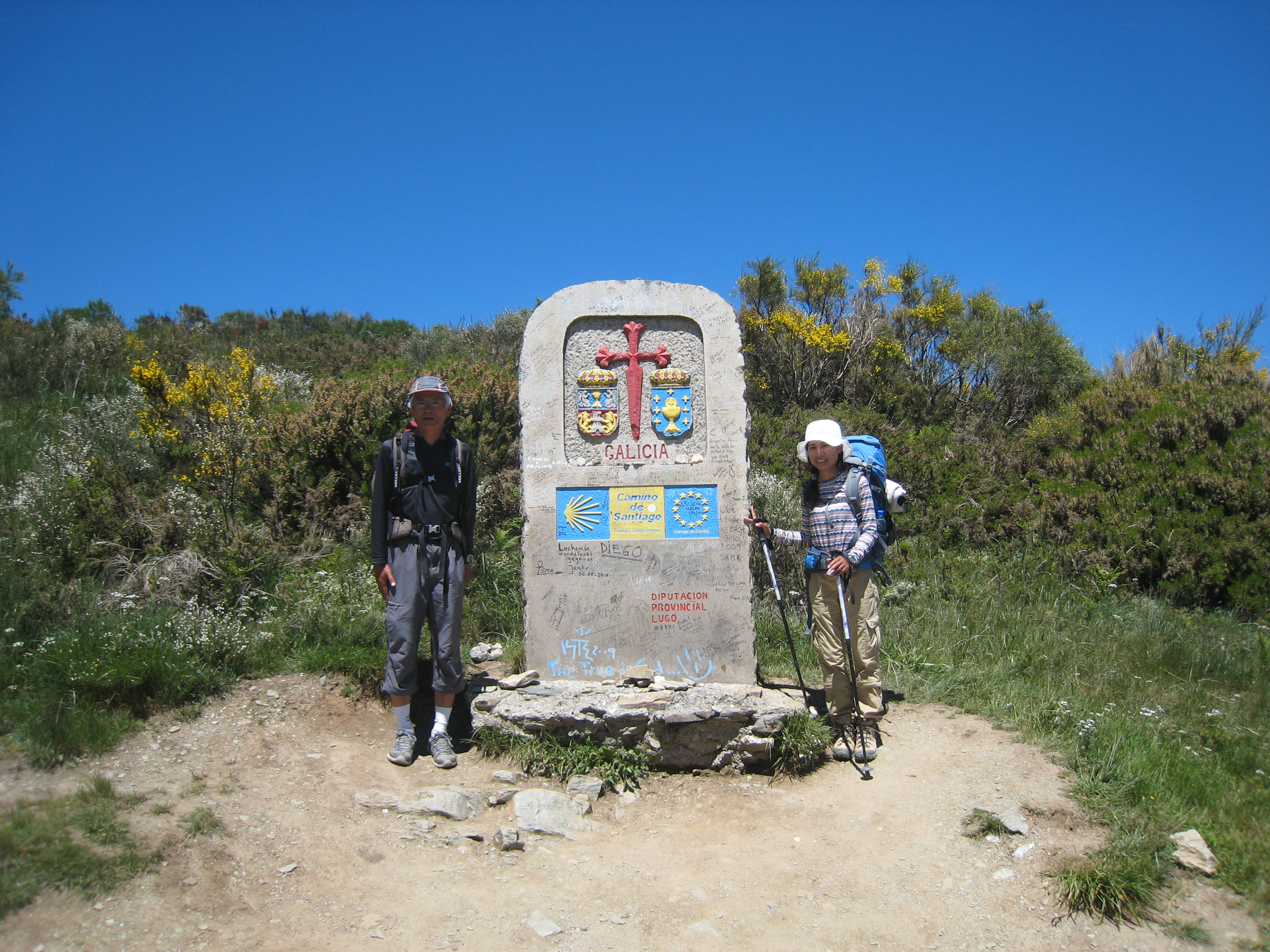 アルベルゲで朝食を摂り、7時10分にスタートする。相変わらず道路沿いの山道を進む。途中高速道路らしきものの下を潜った。Vega(ベガ) de(デ) Valcarce(バルカルセ)で休憩と10日程延長の航空便変更(268€/2人)の手配をしていると12時になった。15時頃牛の大群に出くわす。そこから30分程上ったPunto de entrada a Galicia(展望台)に赤い十字架の道標がある。出発から600Mの標高差のO(ド) Cebreiro(セブレイロ)に16時20分に着く。ここには歴史あるIgrexa de Santa María A Real do Cebreiro(教会)があったので、見学しスタンプを押してもらった。またパジョッサと呼ばれる、萱葺きで石造りの丸い歴史を感じさす住居跡があった。Albergue do Cebreiro(アルベルゲ_5€)は順番で部屋割りをしており、何故だか先着組は2段ベットの大部屋、後着組は1段のゆったりした部屋だった。娘等は大部屋、私は幸運にもゆったり部屋だった。私はコインが差込まれている大きな十字架のある丘に登り、心地良く昼寝をする。360度展望が開け、O(ド) Cebreiro(セブレイロ)の全景が俯瞰出来る。19時30分から近くのレストランでキアラと夕食(10€)を摂る。2010年6月22日(火) 快晴