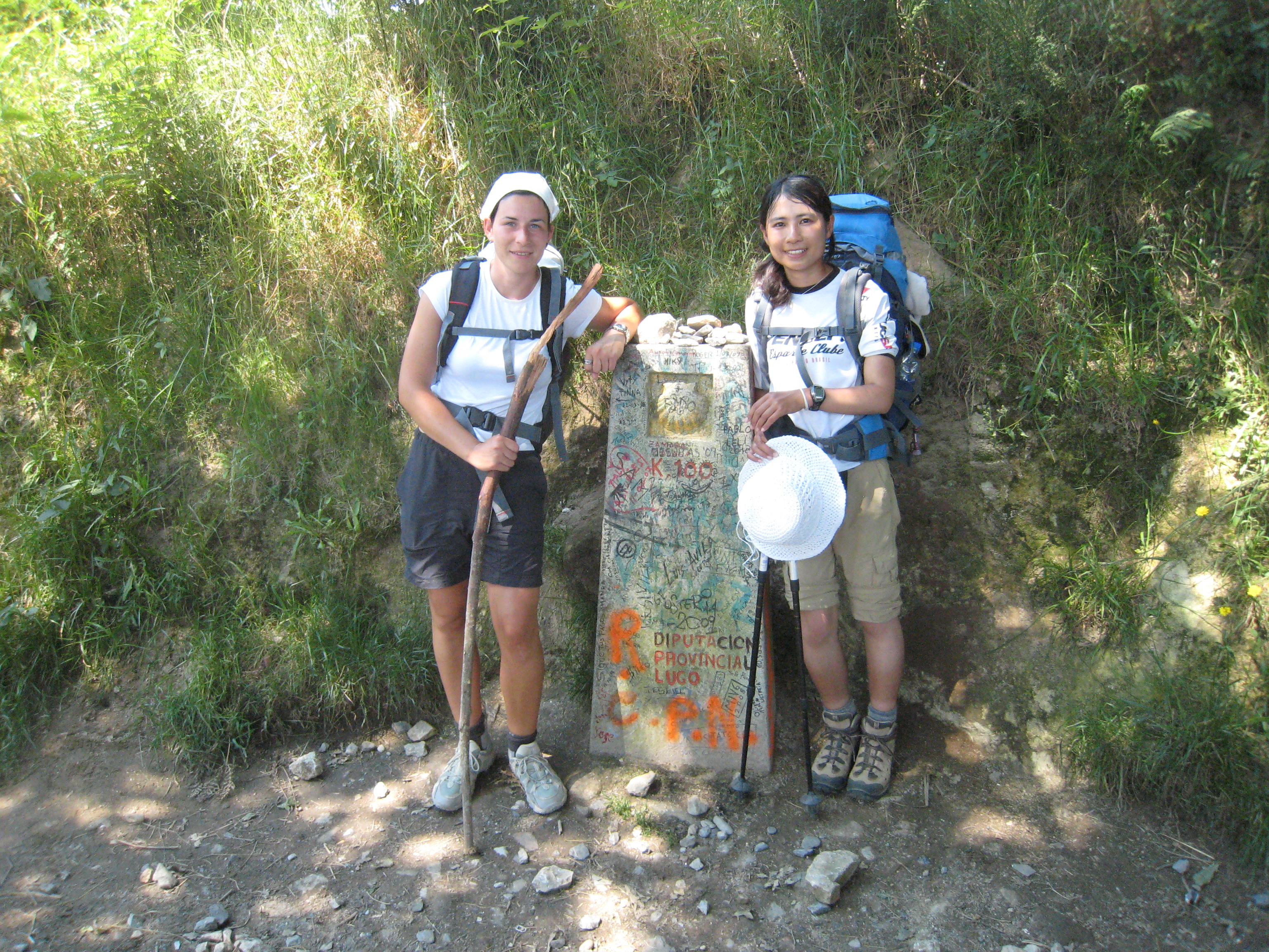 アルベルゲで朝食を済ませ、二人で10€払って、ひさしぶりに6時台の6時45分に出発する。LestedoのIglesia Parroquial Santiago De Lestedo(教会)付近を通る7時30分頃東の空が赤らむ。Palas(パラス) de(デ) Rei(レイ)で休憩後、そこを9時に出発する。Melide(メリデ)手前の町Furelosを流れるFurelos川に架かるPuente de San Xoán de Furelos(ロ-マ橋)を12時40分に通過し、近くのIgrexa de San Xoán de Furelos(教会)を見学する。Melide(メリデ)に13時頃に着き、昼食を摂る。Museo Terra de Melide(博物館)を13時55分に出発し、近くのIglexa de San Pedro de Melide(教会)を見学する。そこから巡礼路を15分程進み、サンチャゴまで50Kmのborne 50km-Camino Frances(道標)を右折して、Iglesia de Santa María de Melide(教会)を通り郊外に出る。セブロイド峠付近から、サンチャゴまでの距離表示が500M間隔でされているので励みになる。記念に、10Km刻みと、ゾロ目の道標を写真に撮り始める。今日も道路沿いの歩道を多少のアップダウンを繰返しながら歩く。比較的大きな町のArzua(アルスーア)のアルベルゲ(10€)に18時前に着く。今日は午前中涼しかったが、午後はいつもどおり日差しがきつい。林が多かったので多少救われる。今日は31.5Km歩いた。アルベルゲで以前会ったアメリカ在住の韓国人夫婦に再会する。夕食は近くのレストランに、ペルー人とキアラと同行する。レストランにはフランソワ夫婦がたまたま居合わせ、賑やかな食事となる。2010年6月26日(土)
