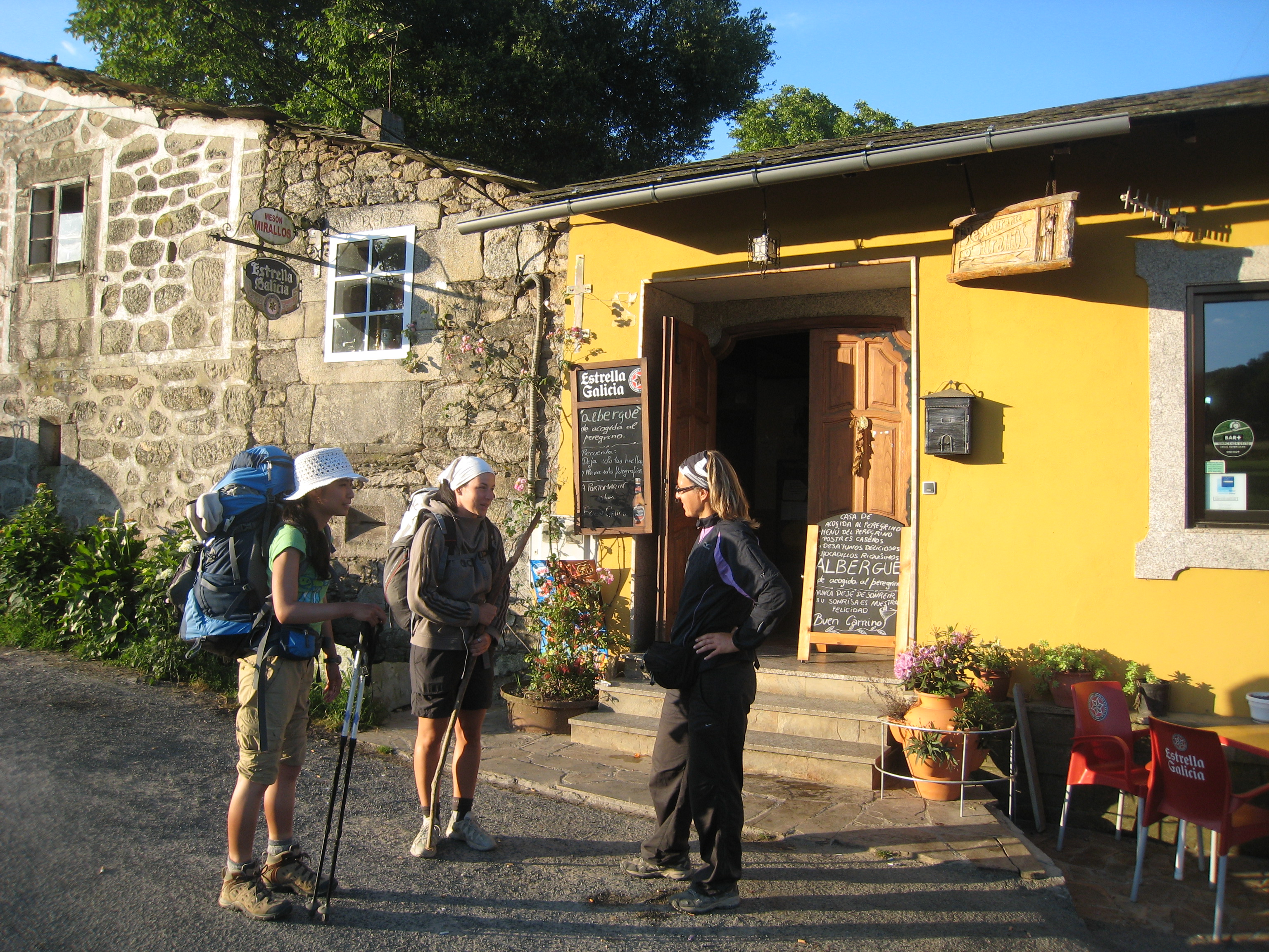 O(ド) Cebreiro(セブレイロ)を娘達は7時20分、私は7時30分にスタートする。私は間違って、Linares(リナレス)まで国道を歩く。何人か歩いていたので安心した。San Roque峠でMonumento al Peregrino(モニュメント)を写真に収める。しばらく道路と平行して歩く。O(ド) Cebreiro(セブレイロ)より高い峠のPoio(ポイオ)のBarに9時45分に着く。大勢の巡礼者がたむろしていたので、私もここでビールとポカリージョを頂く。Triacastela(トリアカステーラ)には私が先着し、娘達はしばらくして到着する。わたしは近くのIgrexa de Santiago de Triacastela (教会)と次の日の分岐点付近を散策する。アルベルゲAitzeneaで宿泊申込みをする。娘達は昼寝をして過ごしていた。夕食(10€)は近くのBarで、片言の日本語がしゃべれるアメリカ人夫婦とカナダ人、キアラと同席する。2010年6月23日(水) 快晴