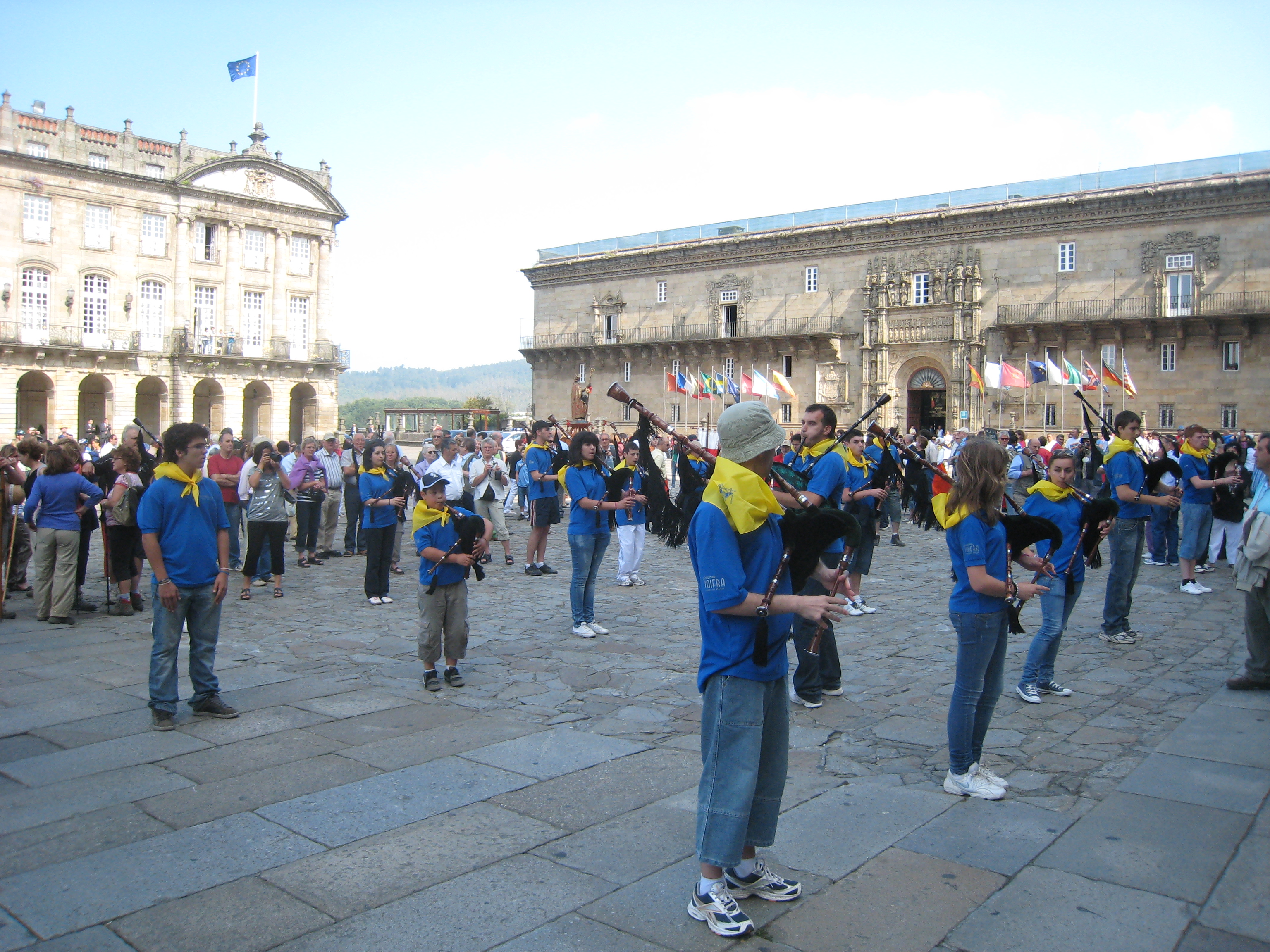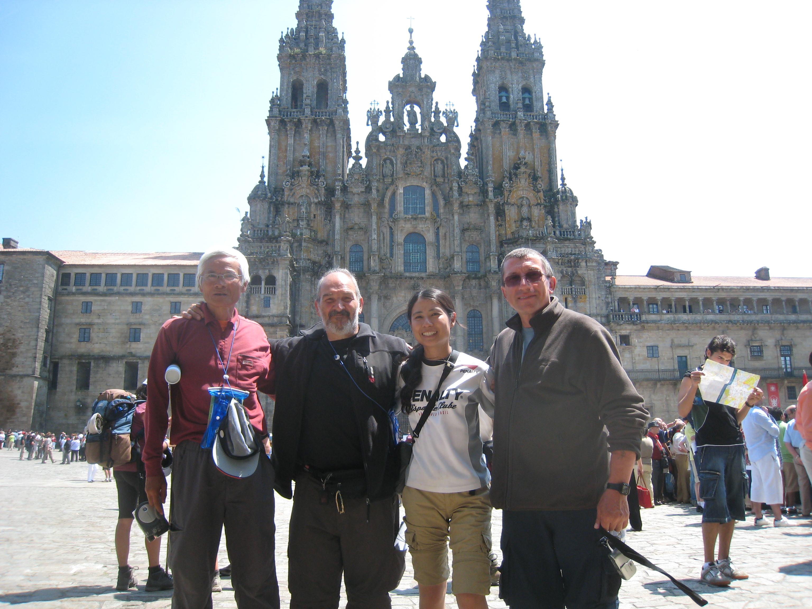 オブラドイロ広場に出ると、歌のうまいドイツ人夫婦、オーストラリア夫婦、涼子さん、その他娘が出会った多くの人達と示し合せた様に再会した。それぞれの人たちと記念写真を撮りあったり、最高潮に達したイベントを見て高揚した気分で過ごす。14時頃変なスペイン人セザールに連れられ、立席のスペイン料理店に行く。その前で自然に集まった人達と写真を撮る。その後サマランカの大学に留学中の日本人と土産店をまわり、ティーシャツ等を購入した。夜は昨日約束してあったフランス人3人組と食事した。宿泊はフランス系ケッベク人の案内で、カテドナルド近くのアルベルゲ(18€)を確保する。料金の割には粗末な寝床だった。