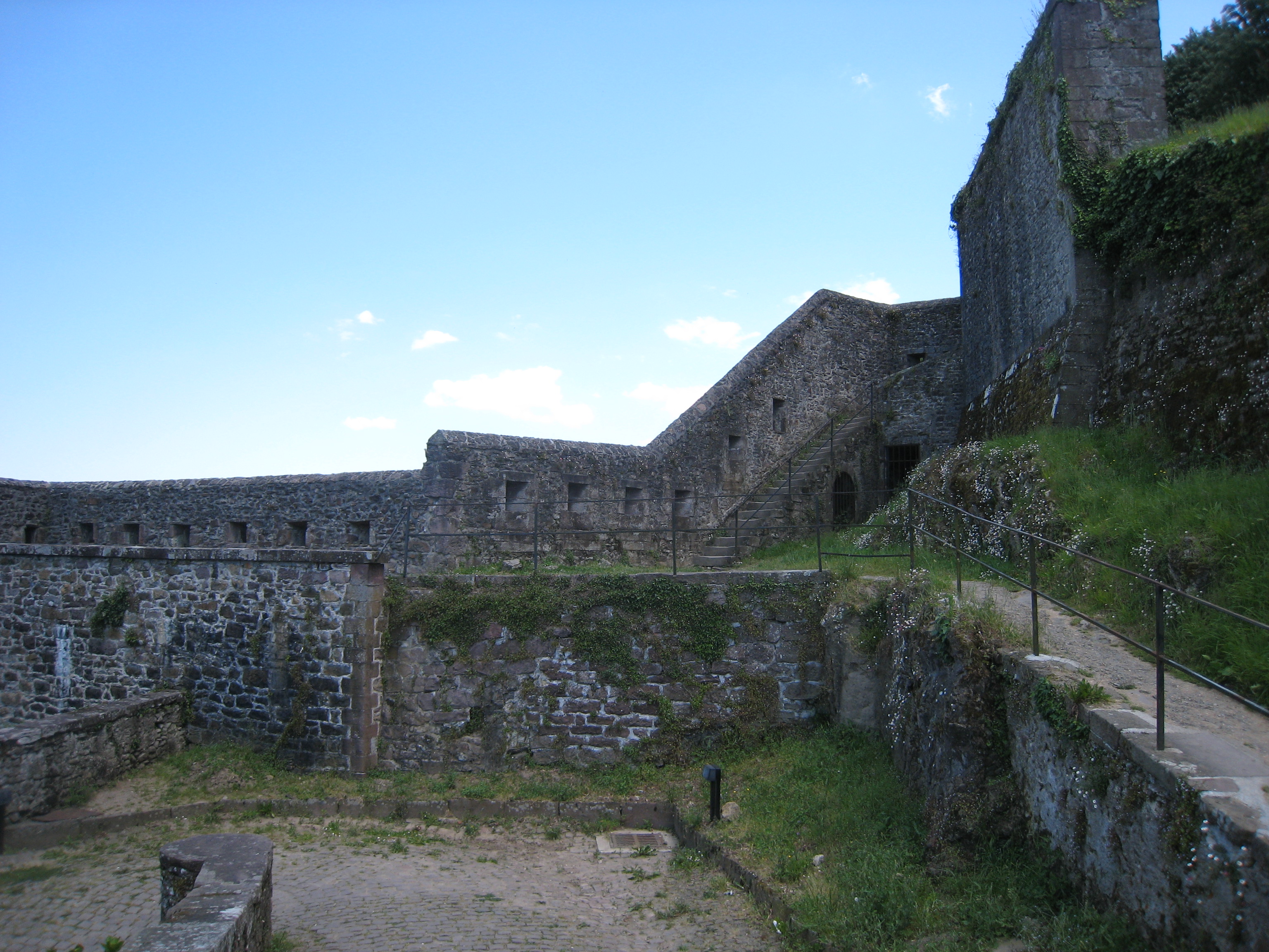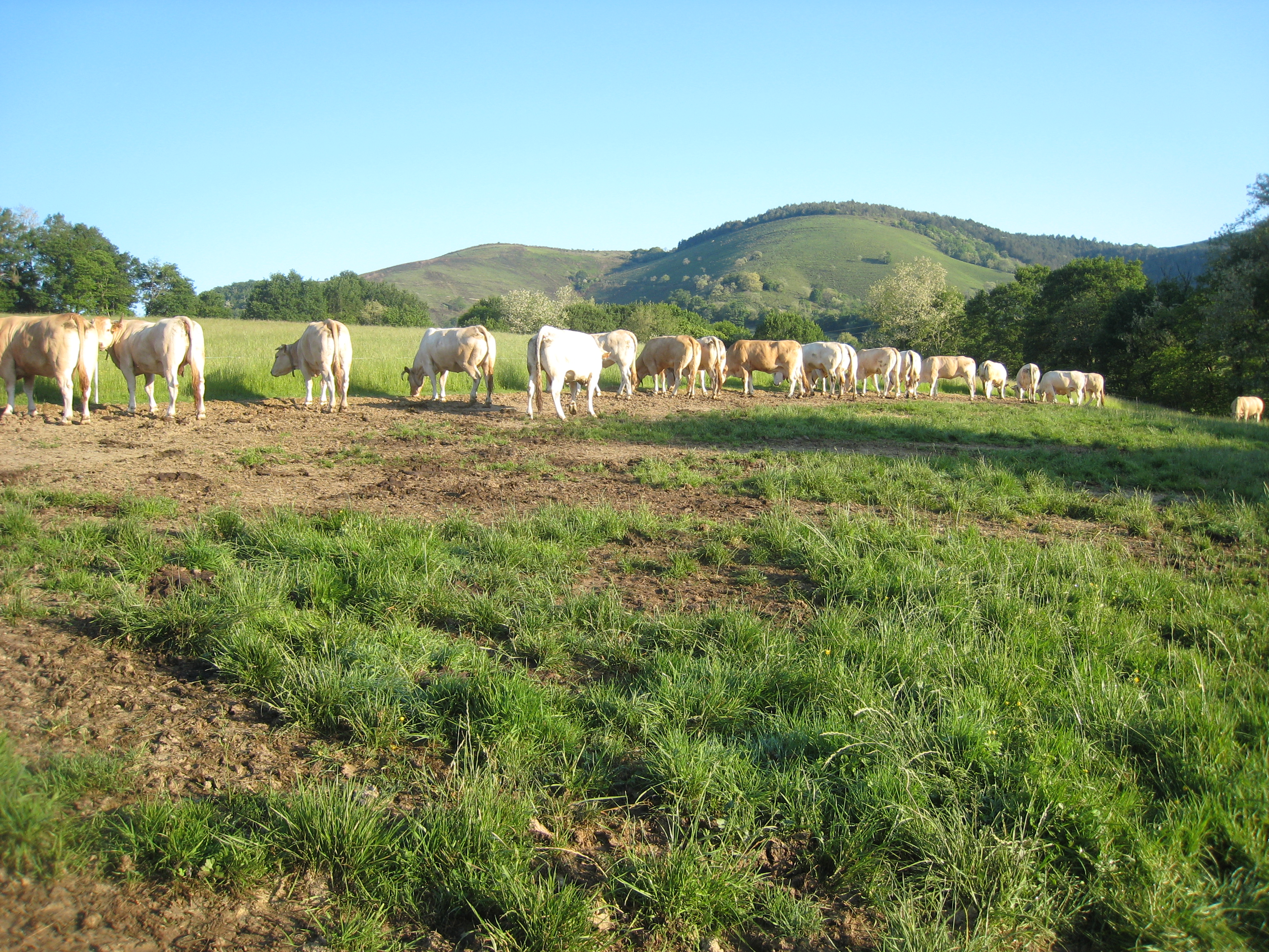 今日は距離が短く遅く出ても良かったが、することがなく7時10分にスタートした。誰と会うこともなく、あいかわらず暑い日差しの中、山と草原、道路の繰返しの巡礼路を行く。途中牧場の柵の道標を見落とし1時間程ロスする。南には雪を被ったピレネの山並みが望めた。Mauleon(モレオン) Licharre(リシャール)のÉglise Saint-Jean Baptiste(教会)前に12時5分到着で、かなりスローペースだった。ぎりぎりツーリストオフィスの閉店に間に合い、今夜の宿ユ-スホステル(15€)を確保する。chez mme ellisalt michèle(ユ-スホステル)は民家風の建物で巡礼路を少し離れた場所にあった。マダムに明日の宿を予約してもらう。シャワーと洗濯をし、近くのモレオン城見学(2.5€)と教会を見学する。夕食がなかったので、近くのレストランで済ます。ボリュームがあり、食べすぎて気分が悪くなった。2010年5月23日(日) 快晴