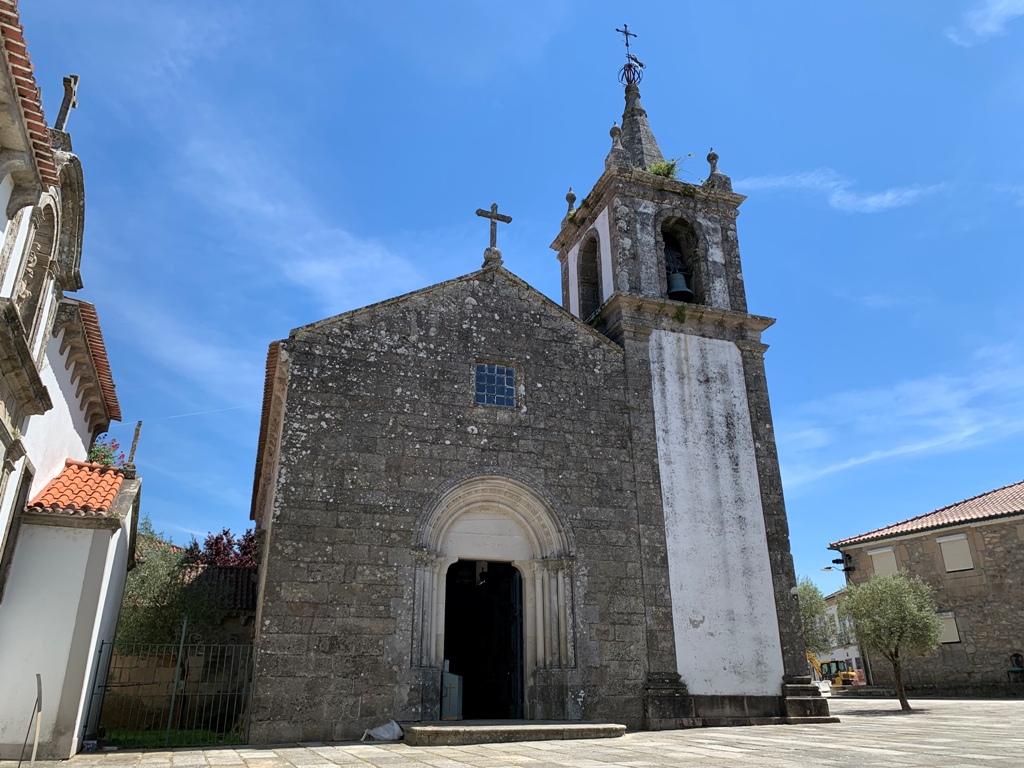 アルベルゲから国道(N-201)を20分程下り、左折して大きな石が敷かれた山道に入る。10分程でロ-マ橋(Ponte Romano)に出会う。道路を横断して、3分程行くとコウラ川(Rio Coura)の大きな水音が聞こえる。再び道路を暫く歩き、右折して石畳の山道となる。さらに25分程歩くと小さな宿泊所(Casa da Capela)があり、傍には水飲み場がある。さらに進み道路に出るとりっぱな大きなサン・ベント教会(Igreja Sao Bento da Porta Aberta)があり、寄ってみるが閉まっている。傍にある携帯電話の鉄柱が気になる。