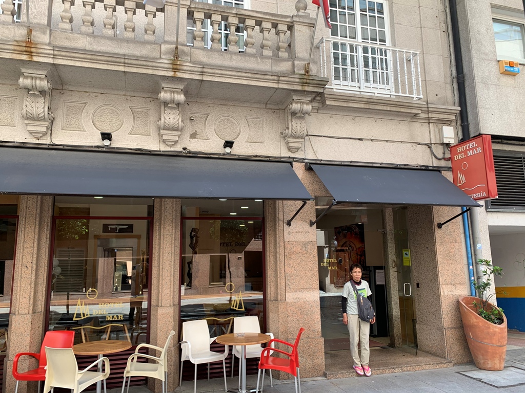 友達夫婦は6時半にタクシ-で、既にサンチャゴ空港に向かっている。私達は8時過ぎ朝食に出かける。バイキング方式の朝食だった。今日はビ-ゴ(Vigo)へ移動する。9時にチェックアウトして、サンチャゴ駅(Estacion de Autobuses)に向かう。何回か通った道なので迷うことなく、9時半駅に着く。窓口でVigo行きの切符を購入する。出発線が沢山あるので、何度も係員に確認する。10時発のバスに無事乗り込む。空席が多少あったが、公園近くの停留場で満員になる。見覚えのあるPontevedra駅に10時4分に停車する。Vigoの街中に11時半に到着し、ここで降車しても良かったが、更に10分程行った終着駅のビ-ゴ駅(Estacion de Autobuses)まで行く。明日のポルト行の切符を購入しようと窓口に行くが閉まっていた。