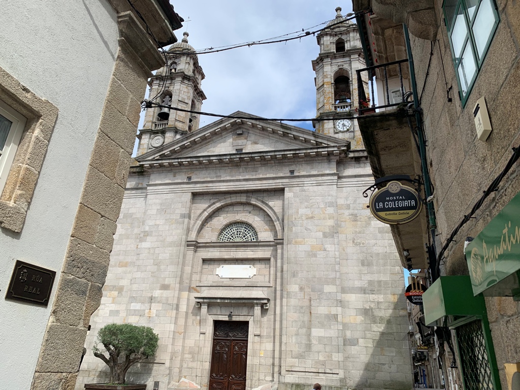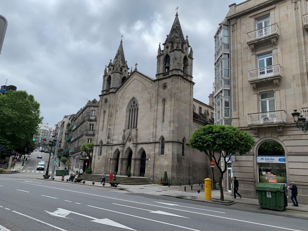 しばし留まり、ビ-ゴ市役所(Vigo City Hall)を目指して城塞内を下る。そこを右折して、港の近くにあるホテルへじぐざぐに進む。昨日予約していたホテル・デル・マル(Hotel del Mar)に14時50分に着く。15時半頃から港に出て、その一角にあるバルでビ-ルを飲みながら一息つく。そこから、曲がりくねった狭い路地にある1156年の資料に記録が残る、ビーゴの歴史ある教会です。