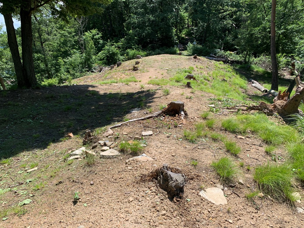 更埴ICから車で10分、しなの鉄道線屋代駅から徒歩25分の森将軍塚古墳館に行く。そこからバスも運行しているはぎの木広場まで歩く。そこから400m程の距離だ。