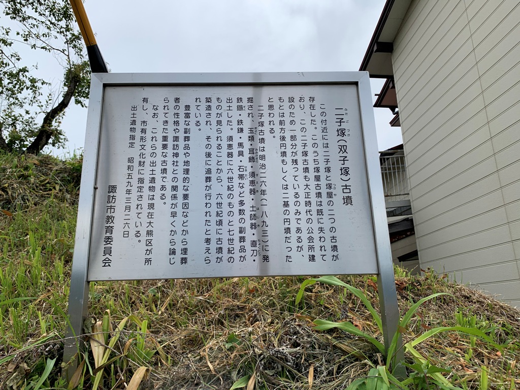 豊富な副葬品や地理的な要因などから埋葬者の性格や諏訪神社との関係が早くから論じられてきた重要な古墳である。(案内板転記)