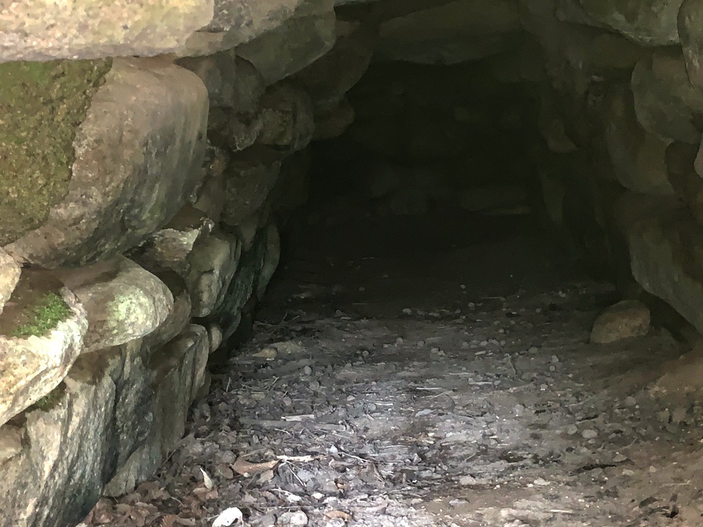 現在知られている穂高筑の八十基の古墳の中でも最も保存状態が良く、石積の様子も良くわかります。石室の形から、この古墳が造られたのは六世紀後半(1450年くらい前)で、穂高地区の古墳の中でも古い方に属します。出土品は散逸してしまい残念ながらありませんが、その当時のムラ長とその家族が埋葬されたものと考えられます。(案内板転記)
