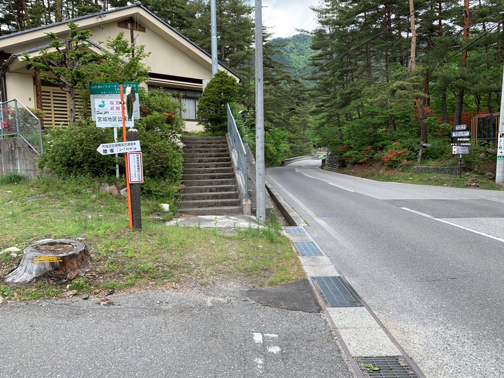 中房温泉に通じる327号沿線の鐘の鳴る丘有明寮近くに、陵塚古墳の道標があるので、そこを入ると直ぐのところにある。