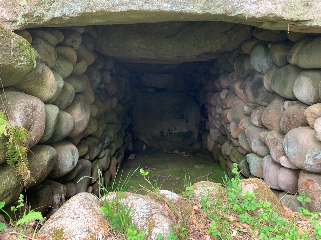 鬼の釜古墳は、池田町城之内集落の東北方の尾根先、塚穴地籍に位置する古墳時代後期にあたる六世紀末から七世紀初めに築造された横穴式円墳である。