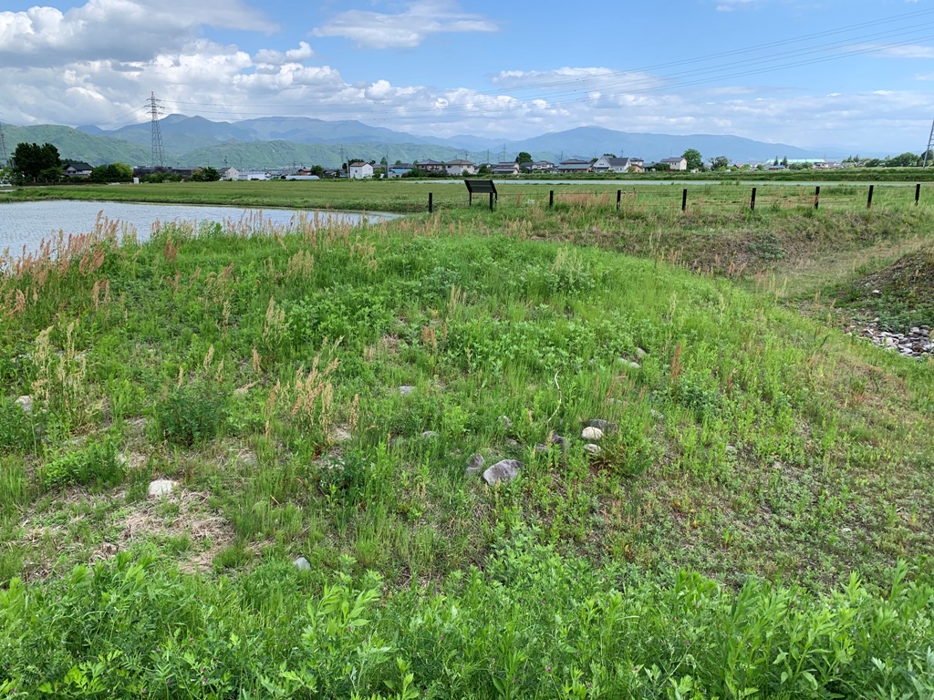 穂高古墳群には、現在約80基の円墳が確認されていて、その殆どが山麓の沢沿いにあるが、上原古墳は標高の低い約585mにある単独の古墳である。