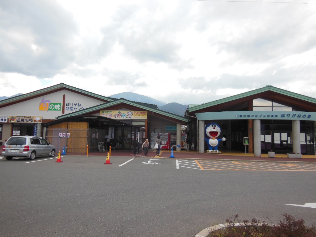 ほりがね物産センター⇒営業時間:7:00~17:00(6~9月)、8:30~17:00(10~5月)、定休日:年始1週間以外無休、TEL:0263-73-7550