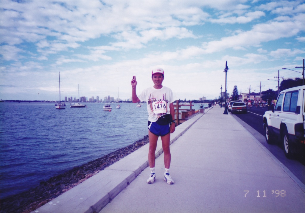 今年のゴールドコーストマラソンは、20周年の記念大会です。南太平洋の海外線に沿った、平坦な走り易いコースです。乾季なので雨は殆ど降ることはなく、この日も良い天気だった。フルマラソンの参加者は2千人余りで、道も広く、のんびり海風に吹かれながら走れた。4時間32分かかったが、沿道の景色を楽しみながら、気分良く完走出来た。ゴール後、サーファーズパラダイスビーチ(Surfers Paradise beech)でのんびり過した。1998年7月13日(月)