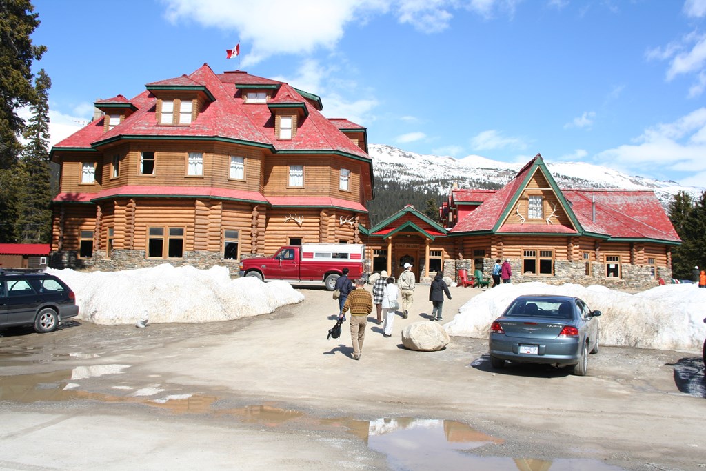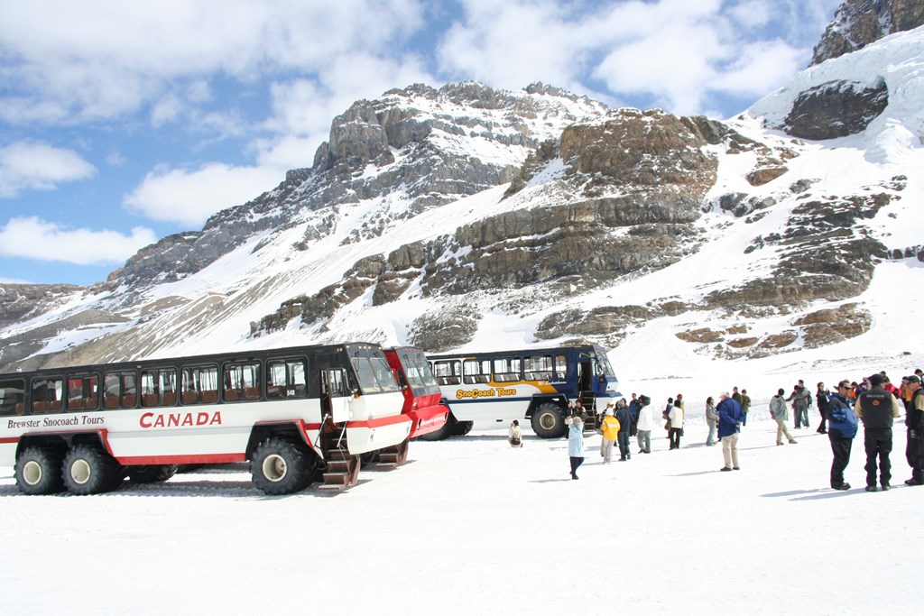 The Colombia Icefield, which has the largest ice field (325 km2) in the Rocky Mountains, was crowded with many people.Participate in a walk through the large ice field with a snowmobile that everyone participates in.In recent years, glaciers have shrunk, but the size is overwhelming.On the way back to Banff, stop at Lake Bow.Lake Bow was completely frozen, and there was a glacier-covered rocky mountain on the opposite bank. After arriving in Banff, cross the Bow River and head out to the famous Fairmont Banff Spring Hotel with volunteers. On the way, I was surprised to see some people swimming at a hotel pool this season.