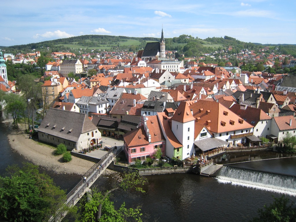 Call from the hotel and apply for a tour of the Czech Kromlov on the Bohemia Highway listed on the tourist guide.From the train window, I could see a uniquely shaped Dancing House near the Illasek Bridge.Along the way, we will stop at Chesshe Budyevie, the largest town in South Bohemia. Přemysli Ottokar II Square is centered around the Samsonova Fountain, with beautiful baroque and Renaissance-style colorful buildings.Among them, the city hall with three towers was particularly noticeable. Also, the 72m black tower of St. Nikolache Cathedral was visible from everywhere.