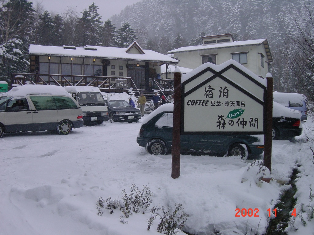 I was surprised when I woke up in the morning. The car was buried in the snow.We were wondering if we could go home, but the snow stopped completely so we decided to wait for a while.Since the main road had been cleared of snow, everyone removed the snow from the parking lot and made it possible for cars to move.Fortunately, both cars had chains, so I was able to leave safely.The car without any snow equipment was in trouble.I left the inn after 10 o'clock, but my car entered the ditch because of the slope and not being used to the snowy road.After struggling, I finally escaped, but I was worried about slipping and started driving slowly.However, as the altitude goes down, the snow gradually decreases.When I reached the foot of the mountain, the snow disappeared completely.
