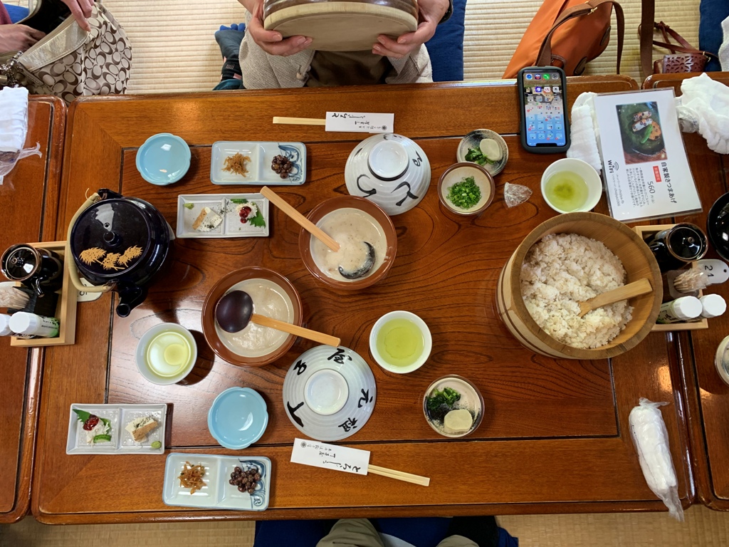 そこから、本日予約している昼食場所の鞠子宿丁子屋に行く。ここで名物のとろろ定食を頂く。腹が満たされ、最後の目的地登呂遺跡へと車を走らせる。考古学に興味がない我々は、ただの掘っ立て小屋にしか見えなかった。本旅行の目的をすべて終了し、岡山組は静岡駅から新幹線で、私たちは静岡ICからそれぞれ家路につく。