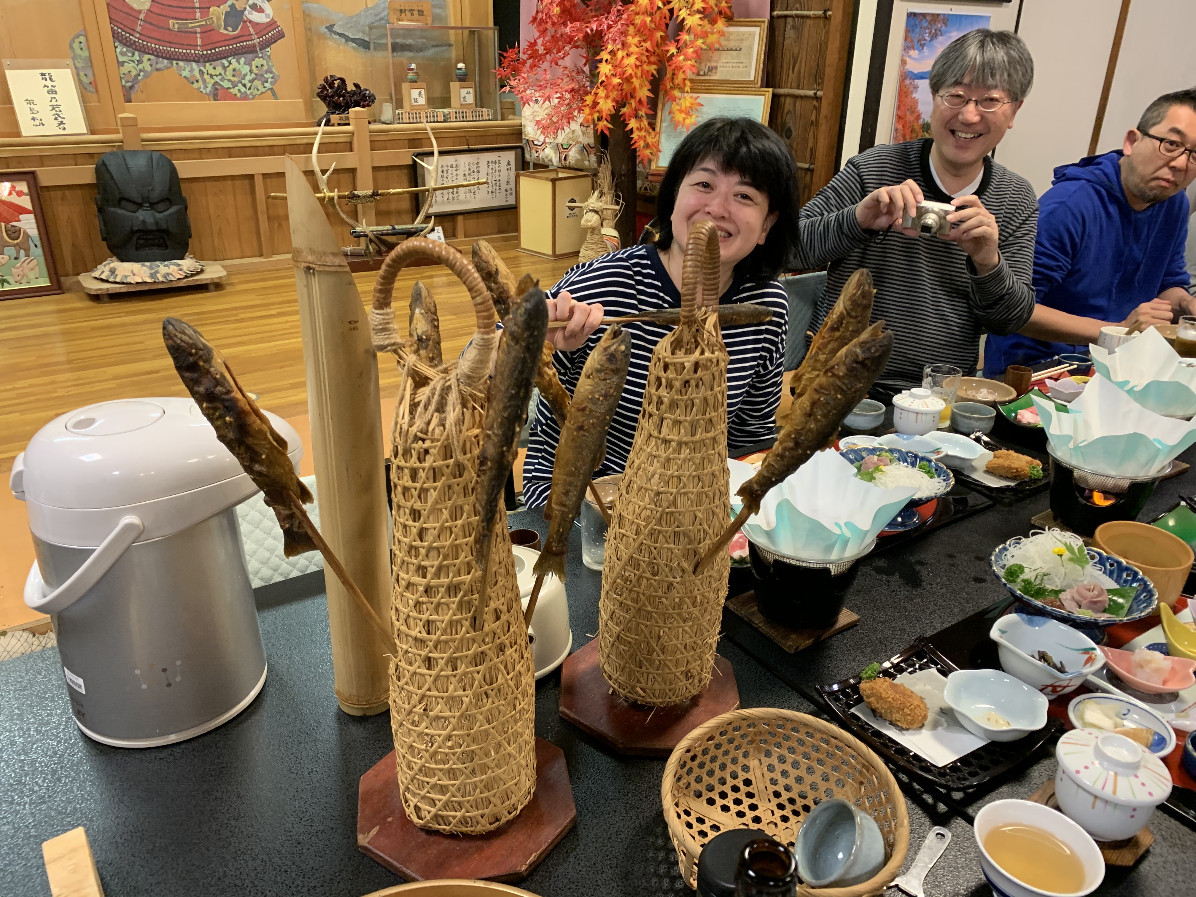 レ-ス後、盛岡駅行きの送迎バスに乗り、駐車場へと急ぐ。高速道路で一関まで行き、そこから一般道を30Km程行く。日の落ちかけた17時に新湯温泉くりこま荘に着く。この宿は栗駒山近くの秘湯の湯です。夕食は岩魚の田楽焼、岩魚丼等山の幸、清流の恵みを活かした料理が並ぶ。マラソンの疲れと足の痛みもあり、早めに就寝する。2019年10月28日(月) 晴
