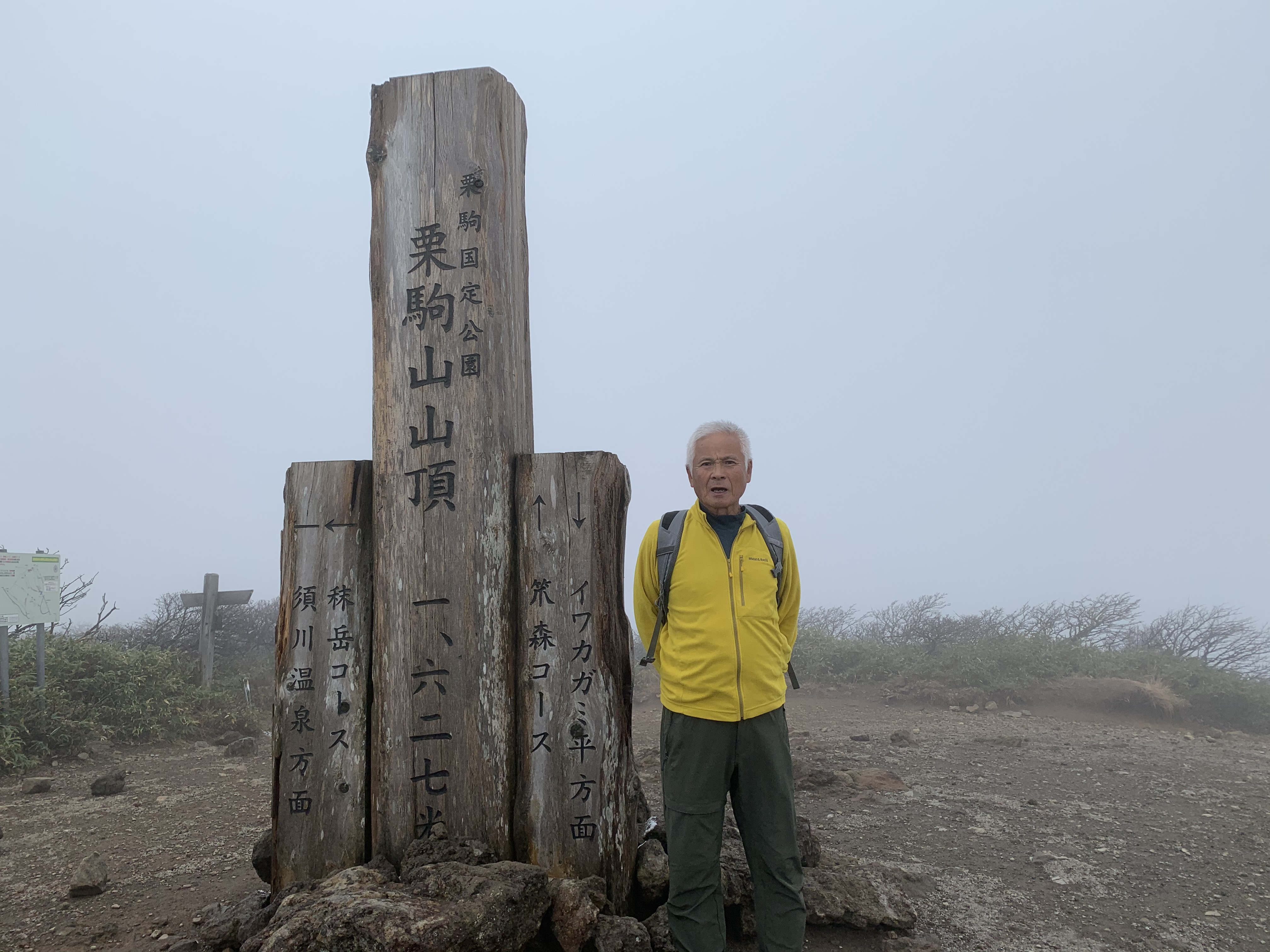 新湯温泉くりこま荘(8:30 22分) ⇒ いわかがみ平駐車場(8:52 1時間17分) ⇒ 栗駒山_1,627m(10:09-10:12 1時間) ⇒ いわかがみ平駐車場(11:12-11:16 9分) ⇒ 行者滝(11:31-11:34 33分) ⇒ 若柳金成IC(12:07 1時間23分) ⇒ 国見SA(13:30-14:00 2時間34分) ⇒ 太田強戸(16:34 2時間15分) ⇒ 梓川SIC(18:49)
