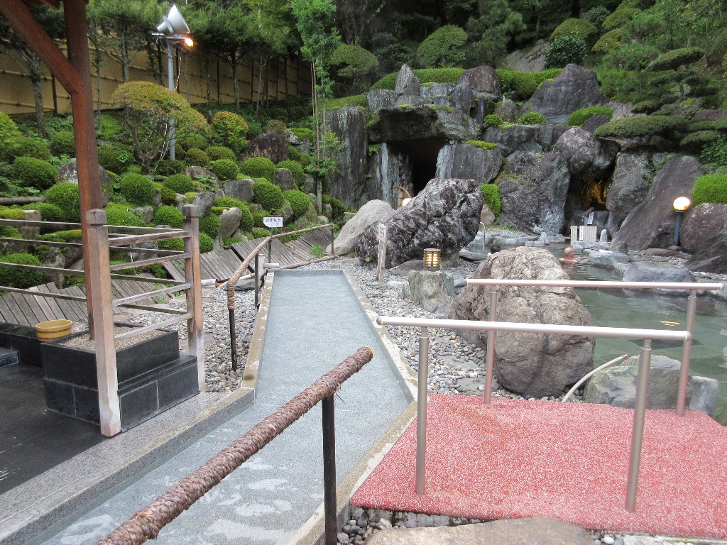 そこからヘブンズそのはらロープウェイに乗るつもりだったが、時間の問題と視界が悪いため、今夜の宿湯元ホテル阿知川に直行する。本ホテルは洞窟風呂が売で、昼神温泉の奥まった所にある。大規模なホテルで、連休期間の団体客等で満員状態のためか、サ-ビスが行き渡っていなかった。