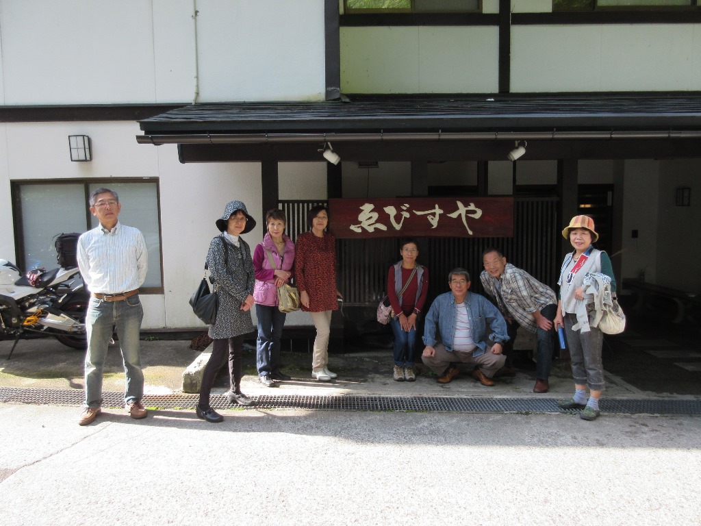 白骨温泉ゑびすや(8:30) ⇒ 一ノ瀬園地(9:30 9:40) ⇒ ながわ山菜館(10:20) ⇒ 松本IC(11:40)