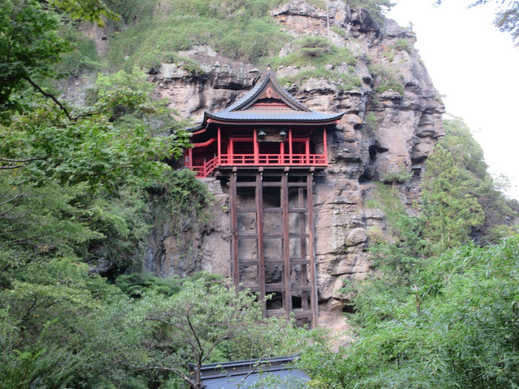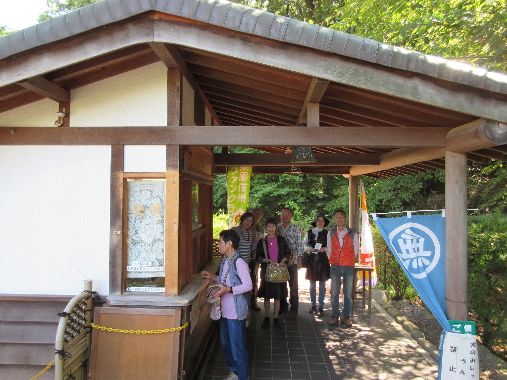 次の目的地布引観音までは15分程で行けるが、道を間違え時間ロスをした。14時45分に布引観音駐車場に着く。案内板に、駐車場より徒歩20分と明記していた。断崖絶壁にかかる重要文化財観音堂には、全員20分以内の15時10分頃に着いた。「牛にひかれて善光寺参り」の伝説となった寺です。