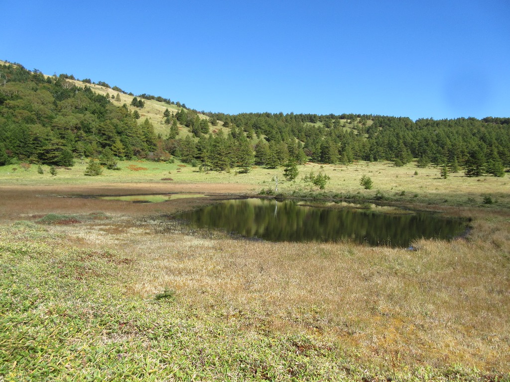 高峰高原ホテルを8時40分に出発する。ランプの宿付近を散策しようとしたが、車が置けず断念。そのまま池の平湿原に向けて、未舗装の道路を進む。有料駐車場に車を置いて、9時10分頃から池の平湿原のウォ-キングを開始する。この時期、高山植物は数えるばかりだったが、澄み渡った高原の空気を満喫した。元来た道を引返し、ホテル前からチェリ-パ-クラインをひたすら下る。