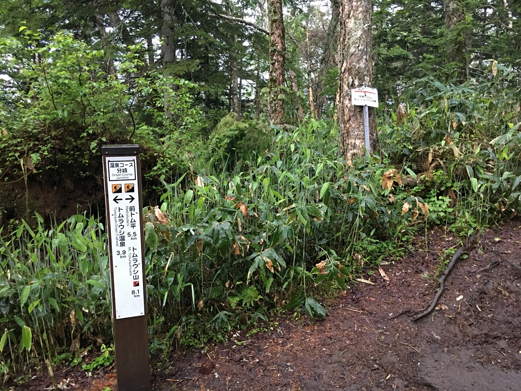 トムラウシ山頂(10:59 39分) ⇒ 十勝岳分岐(11:38 51分) ⇒ トムラウシ公園(12:29 37分) ⇒ 前トム平(13:06 27分) ⇒ 前トム平取付標識(13:33 16分) ⇒ コマドリ沢(13:49 1時間51分) ⇒ カムイ天上(15:40 50分) ⇒ 温泉コ-ス分岐(16:30 30分) ⇒ トムラウシ短縮コ-ス登山口(17:00-17:05 20分) ⇒ 国民宿舎東大雪荘(17:25)