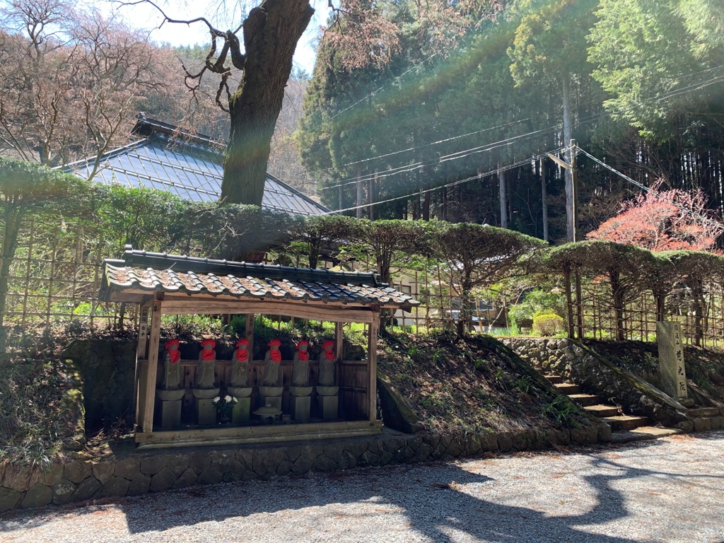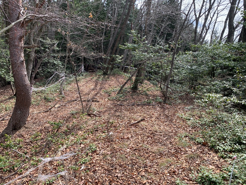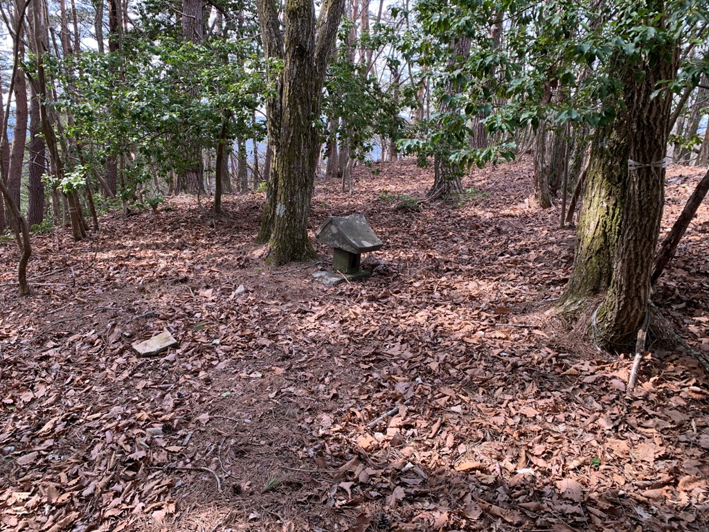 飯縄城への取りつき場所がよく解らないので、他の人のホ-ムペ-ジを参考に慈光院横を通り中央本線路上に出る。線路を渡り暫く踏み跡を捜し、暮石がある付近から直登する。足元が悪く迷いそうだったので、引返してトンネル上の僅かな踏み跡をたどる。暫く常光寺方向に進むと廃線跡に出る。その少し高台に祠があった。廃線のレ-ル上に下りてル-トを捜していると、茸止めのテ-プ沿いに踏み跡があったので、それに沿って登ることにする。急坂なので木につかまりながら20分程行くと飯縄城跡にたどり着く。尾根上をテ-プに沿ってさらに行くと嵐城跡の小さな祠のところに出る。更に尾根沿いに幾つかのピ-クを越え、西條城跡まで行く。帰りは、嵐城跡付近から、往路とは違う道がはっきりした尾根上を下りる。途中にりっぱな祠があり、その付近から急坂になる。そこを下りきると中央本線寺山トンネル(名古屋側)に出た。線路を渡り5分程歩くと、上手道祖神のところに出る。そこから慈光院入口までは10分程で着く。