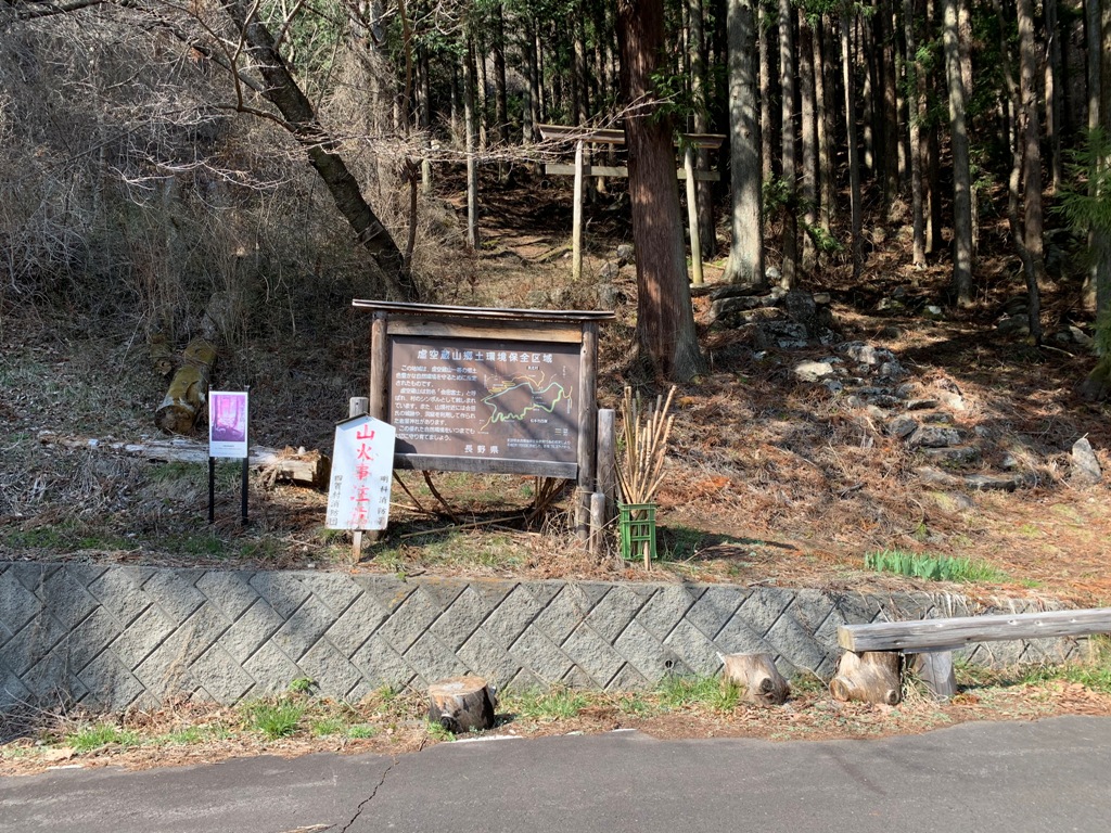 県道303号会田宿信号から四賀運動公園方向に向かい、林道虚空蔵に入る。3.1km程で中ノ陣城跡登り口に着く。