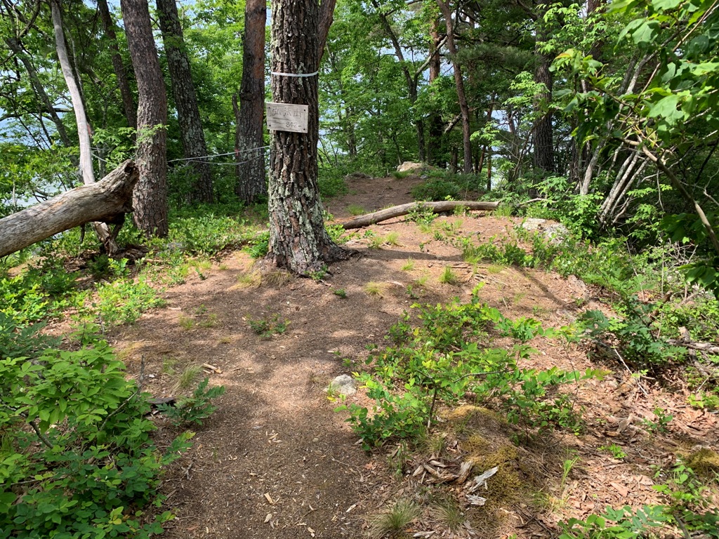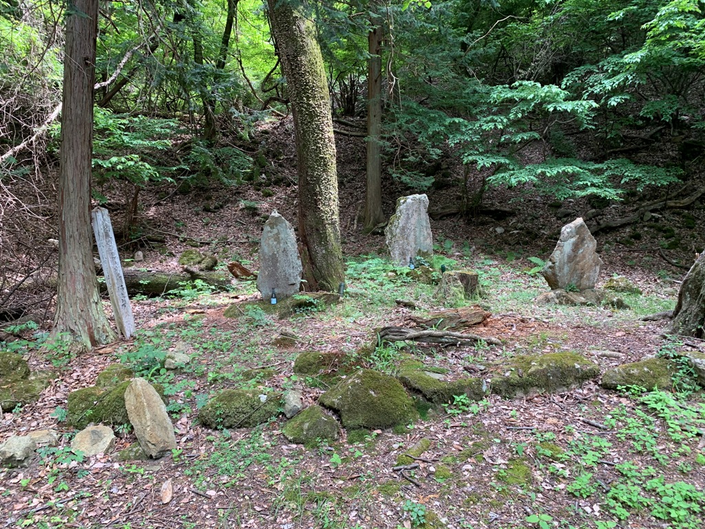 前山寺を目指して進むと、塩田城跡の道標と駐車場がある。この一帯が塩田城跡で、北半地域は開発されているので、この日は南半地域から弘法山にかけて散策する。塩田城跡南半地域入口の案内板から山道に入る。程なく防獣扉があり、開閉して入ると直ぐに塩田城跡発掘調査地点に着く。三島社との分岐を右に進むと古井戸跡があり、虎の口の横手を通り塩田城跡最高部の小郭に至る。