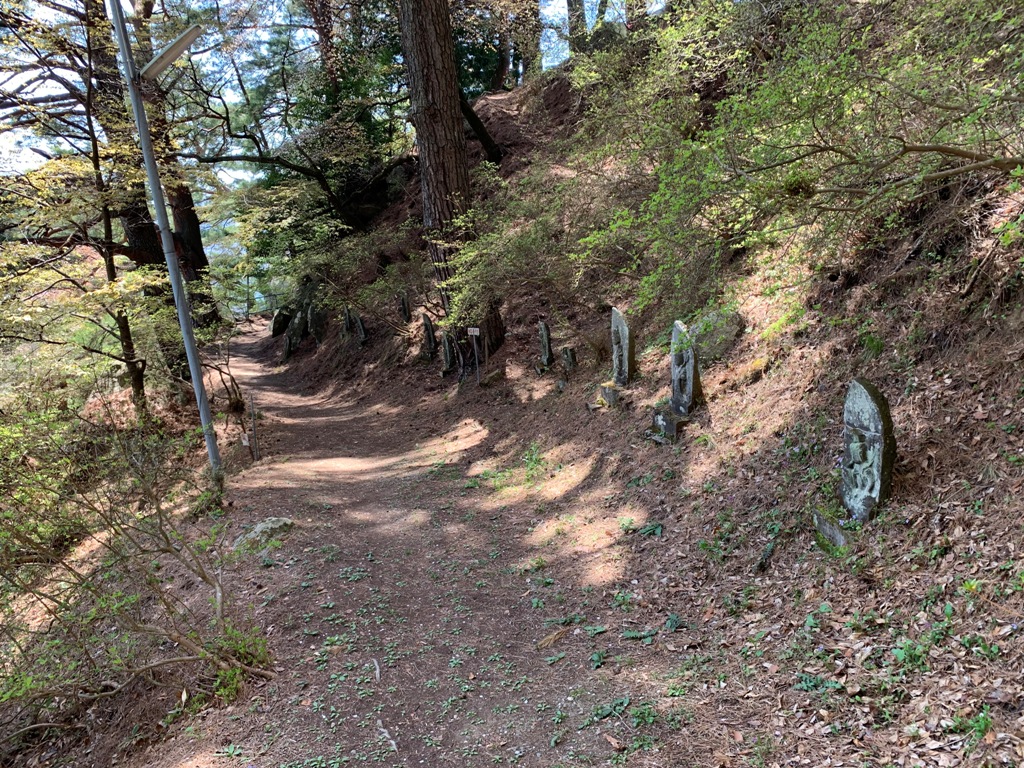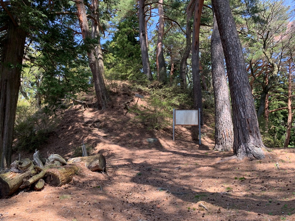 国道20号上原北信号付近から永明寺山公園の案内に従って狭い道を上っていく。数か所に表示があるので安心して車を進められる。上原城跡まで2.4km程で入口に大きな案内板と駐車場があり見逃すことはない。