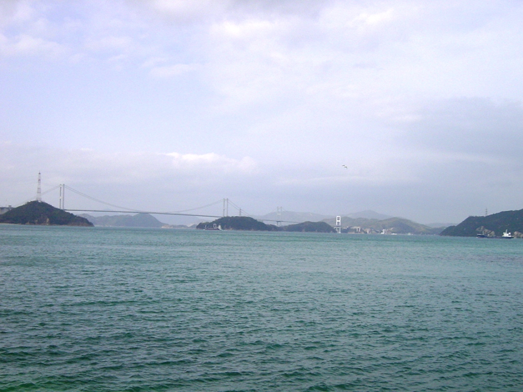 三つの吊り橋が連続する構造は世界的にも珍しく、第一大橋(大島側)・第二大橋(武志島側)・第三大橋(今治側)が一体となって約4キロに及ぶ壮大な景観を形成している。白い主塔とゆるやかなケーブルの曲線は、瀬戸内海の多島美と調和し、海上を滑るように延びる姿が印象的である。