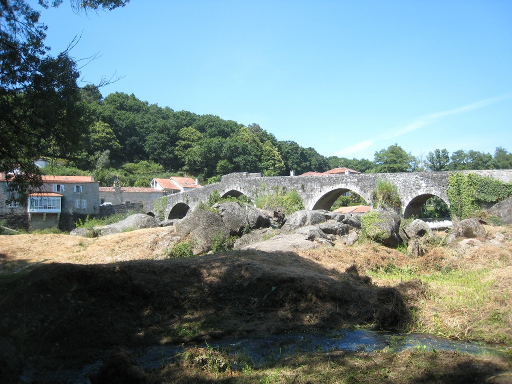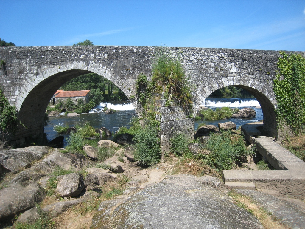 橋のたもとには水車小屋や礼拝堂、伝統的な石造民家が点在し、小さな集落全体が時を止めたような雰囲気を保つ。かつて巡礼者はここで川を渡り、サンティアゴからさらに西の“地の果て”フィニステレ岬を目指した。伝説によれば、聖ヤコブの弟子たちが遺体を運ぶ際、この地で奇跡的に敵の追跡を逃れたとも語られ、橋は信仰の物語とも結び付いている。