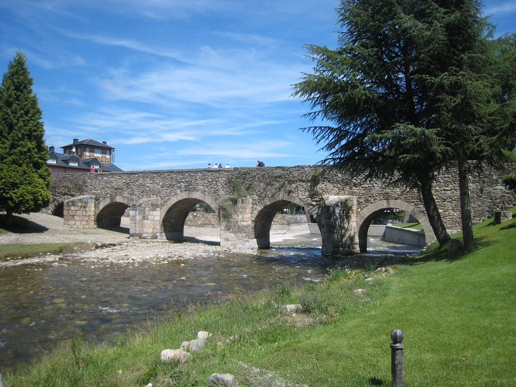 メルエロ川の清流とアーチの影が織りなす景観は四季折々に表情を変え、夏は水遊びを楽しむ人々で活気づく。橋は何度も修復を受けながらも当初の構造を保ち、巡礼文化の生きた遺産として大切に守られてきた。中世の石に刻まれた摩耗の跡は、幾世紀にわたりここを渡った無数の足取りを物語る。